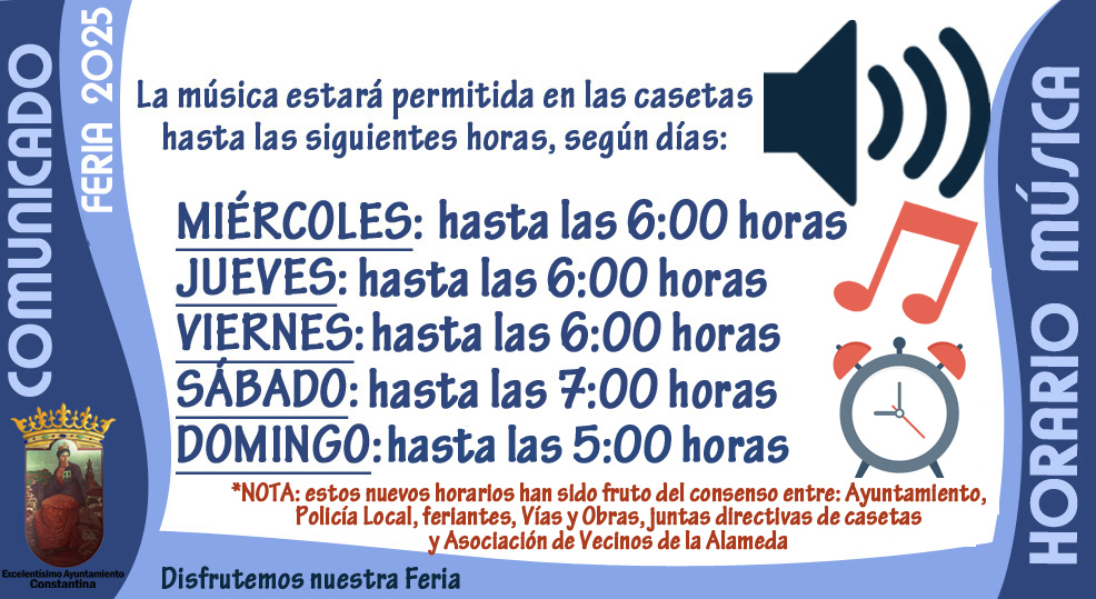 La Delegación de Festejos del Ayuntamiento de Constantina ultima los preparativos y detalles para la tradicional Feria y Fiestas 2025 de nuestra localidad que tendrá lugar del 28 al 31 de agosto. La gran cita estival reunirá diversión, fiesta y alegría para que propios y visitantes disfrutemos de nuestra esperada Feria de Constantina 2025.