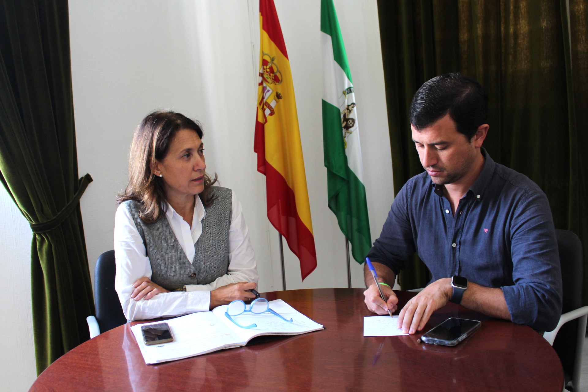 El alcalde de Constantina, Rubén Rivera ha mantenido una reunión de trabajo con la delegada territorial de Consejería de Agricultura, Pesca, Agua y Desarrollo Rural, María Isabel Solís Benjumea para abordar temas de importancia para nuestra localidad, entre ellos tratar la situación epidemiológica de la Lengua Azul y recibir información de ayudas y subvenciones que la Junta tiene a disposición de agricultores y ganaderos ante las pérdidas derivadas de enfermedades que están sufriendo los animales y los cultivos de Andalucía.