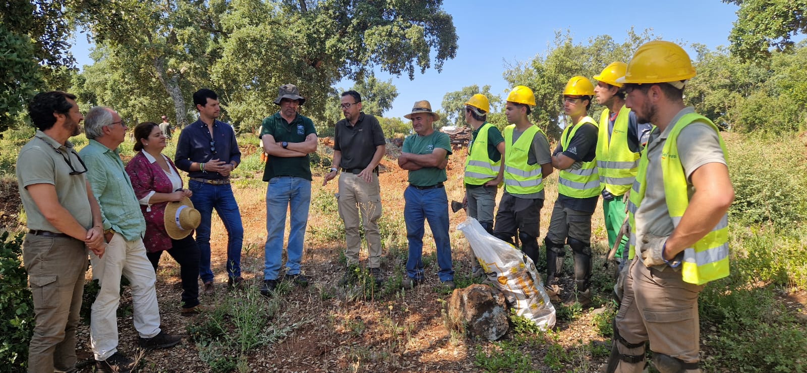 El lugar de los trabajosha sido en la zona de los Montes del Cerro del Hierro, ubicado en los términos municipales sevillanos de Constantina y San Nicolás del Puerto, donde pudieron supervisar la "correcta ejecución" del aprovechamiento forestal y la evolución del descorche planificado en el 'Programa Anual de Mejoras y Aprovechamientos del Plan de Calas'.
