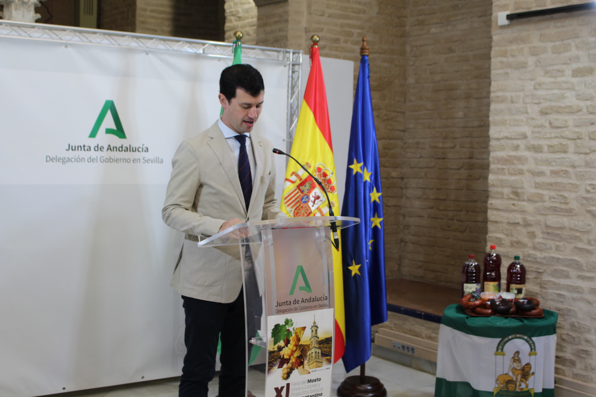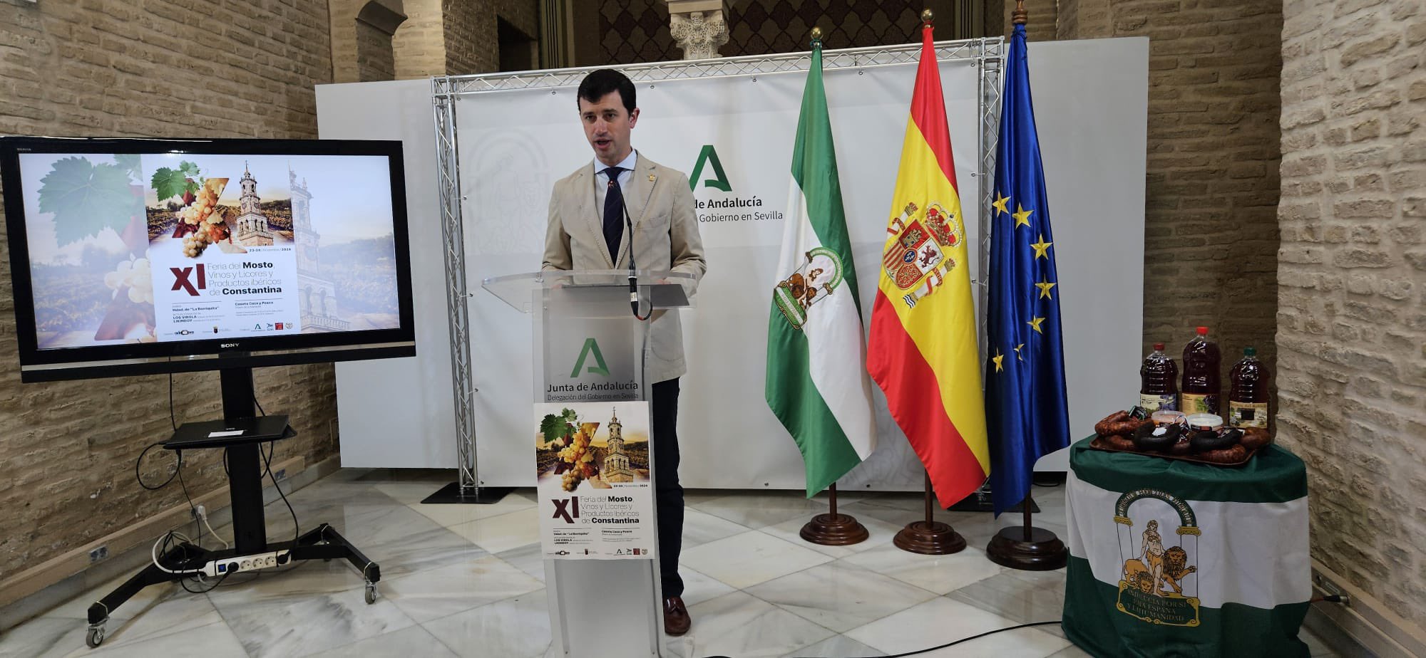 Presentada la "XI Feria del Mosto, Vinos, Licores y Productos Ibéricos de Constantina 2024" en la Delegación de Gobierno de la Junta de Andalucía en Sevilla