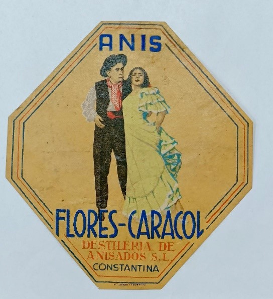 En cuanto a anís “Flores-Caracol”, era un caso en concreto las/los “folklóricos/as” dan nombre a algunas de las marcas de anises. En esta época la publicidad y las marca de anises tenía estereotipos sabiamente manejados por los fabricantes y no podía haber propaganda más eficaz.