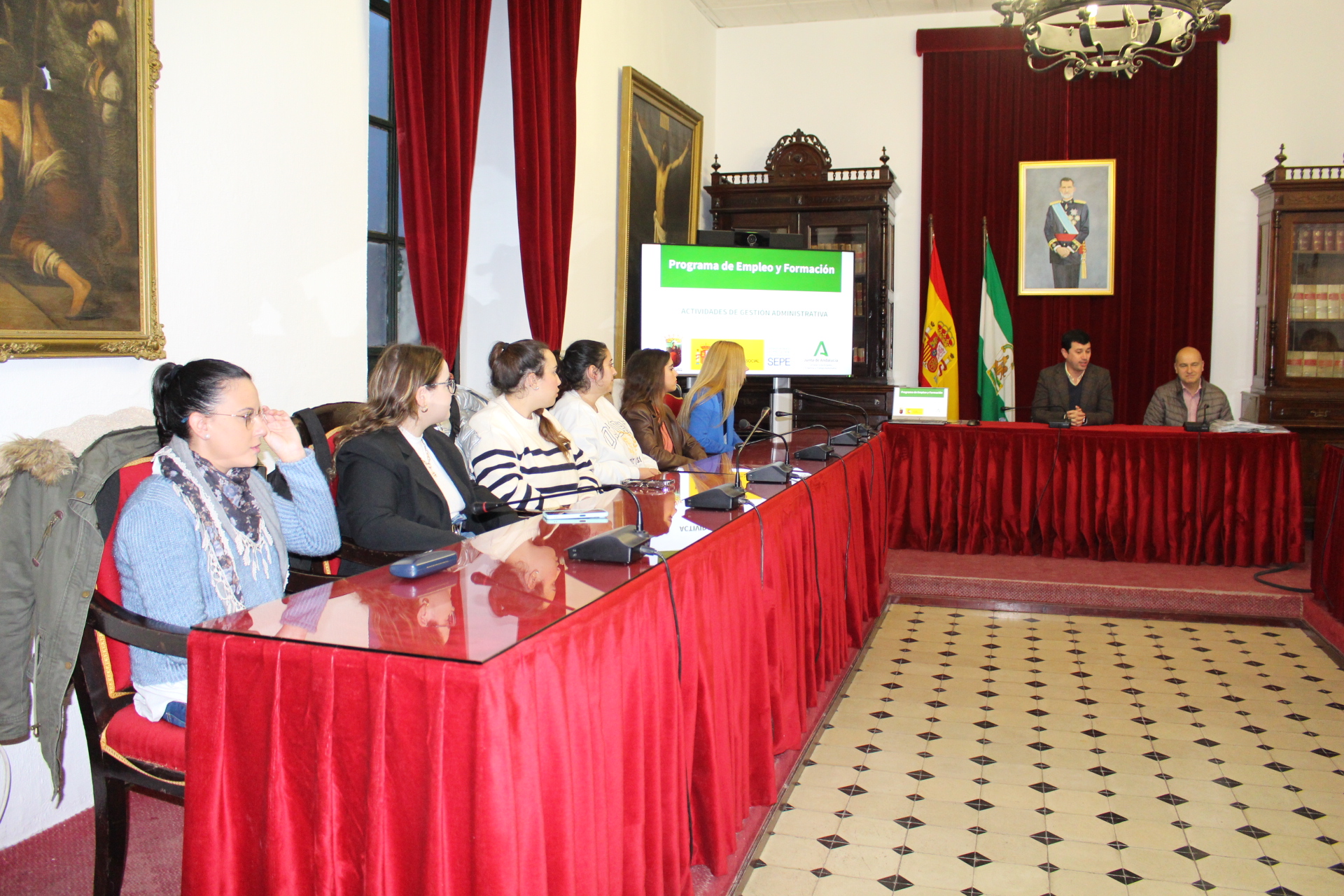 El alcalde de Constantina, Rubén Rivera, inauguraba el pasado viernes 1 de diciembre, el Programa de Empleo y Formación en el sector "Gestión Administrativa" concedido por la Consejería de Empleo, Empresa y Trabajo Autónomo de la Junta de Andalucía que dará formación a 15 personas, menores de 30 años, de nuestra localidad durante un año. El regidor, acompañado por parte de su Equipo de Gobierno, les daba la bienvenida en el Salón de Usos Múltiples a todos los alumnos que integran el programa y que a pesar de dar inicio la teoría el pasado mes de octubre, ahora comienza su período de prácticas.