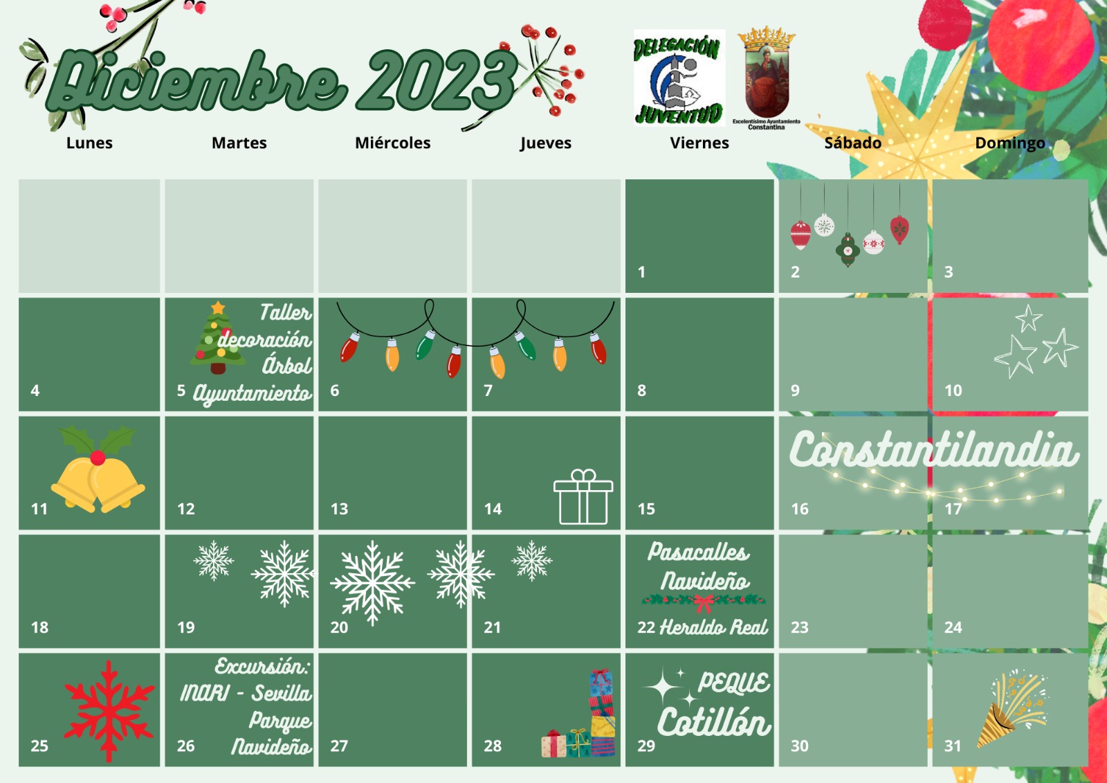 Todo este calendario de eventos y actividades te trae Juventud del Ayuntamiento de Constantina para el mes de diciembre.Ve preparándote para disfrutar.