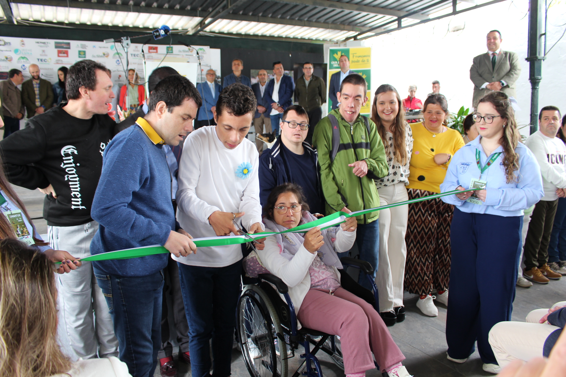 El corte de la cinta corrió a cargo a los usuarios de Asnadis, la Asociación Sierra Norte de Atención al Discapacitado Psíquico. Una asociación que lleva en funcionamiento veintiséis años y que ha acompañado a esta muestra siempre con su rastrillo benéfico.