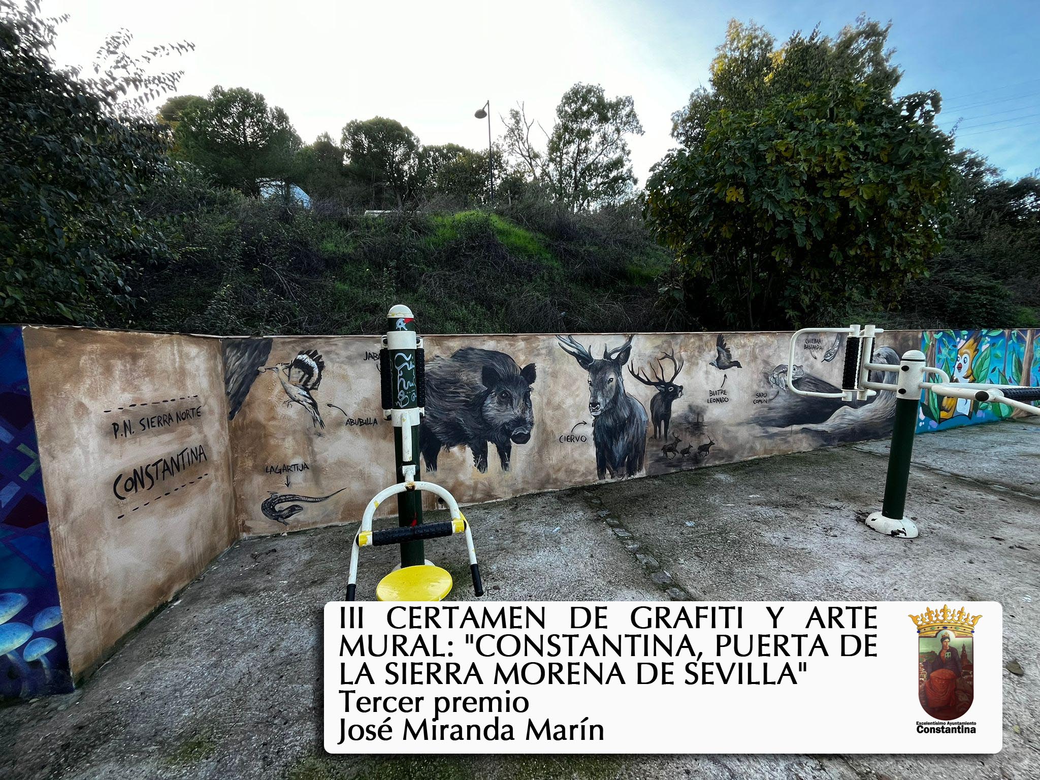 El Paseo del Rihuelo acogía el pasado fin de semana la realización de los grafitis y arte mural presentados al certamen convocado por las Áreas de Cultura y de Juventud del Ayuntamiento de Constantina.