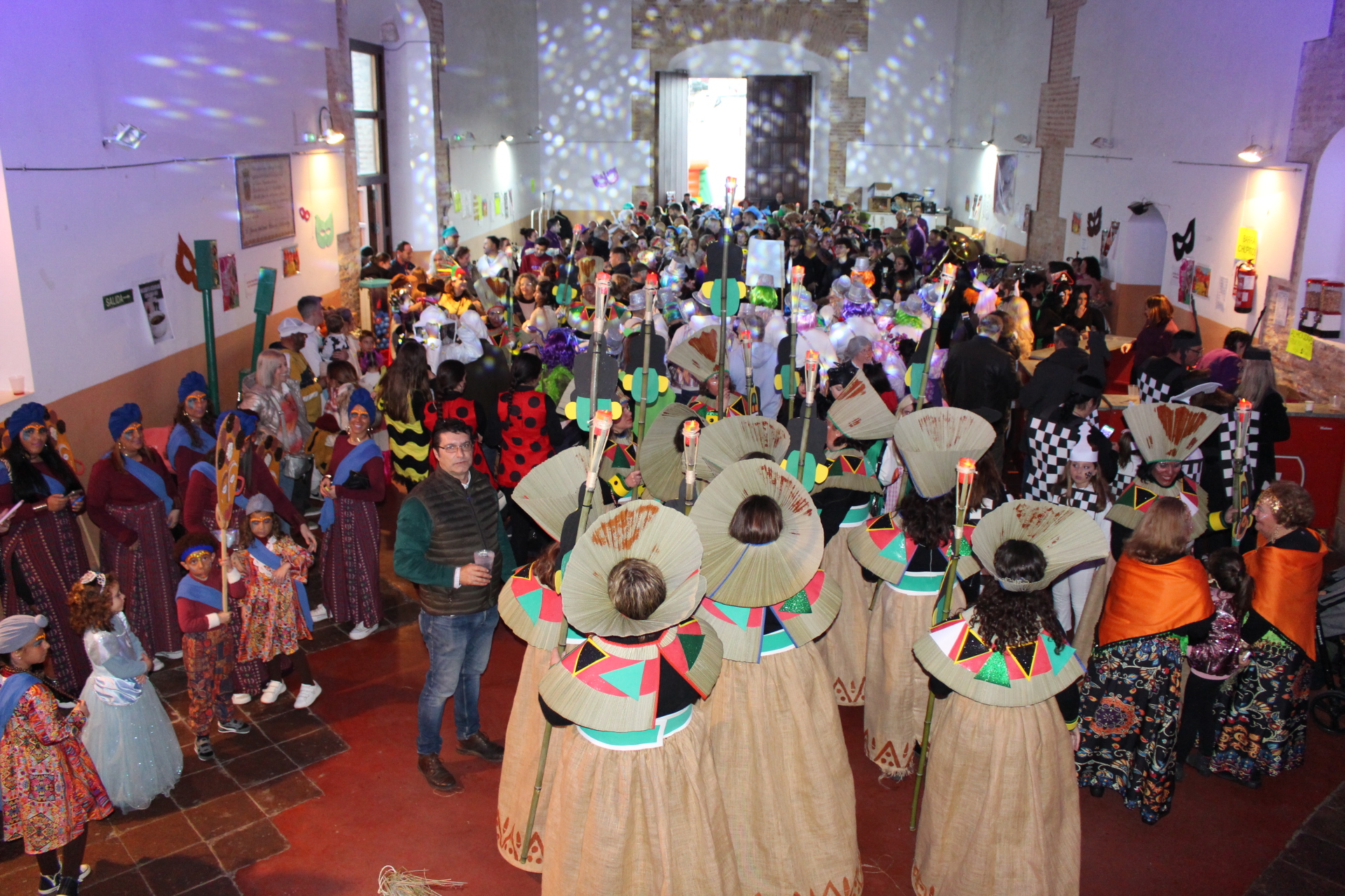 El pasacalles de la tarde del sábado pudo salir y aunque la lluvia lo entorpeció a mitad de camino fue una multitud de participantes los que se sumaron a esta cita con las ganas de disfrutarla. Nuestras calles se llenaron de colores, baile y ocurrentes disfraces y después disfrutaron de la fiesta en la antigua Iglesia de la Concepción. Por la noche, buen ambiente y de nuevo el salón lleno de buenos disfraces, música y diversión.