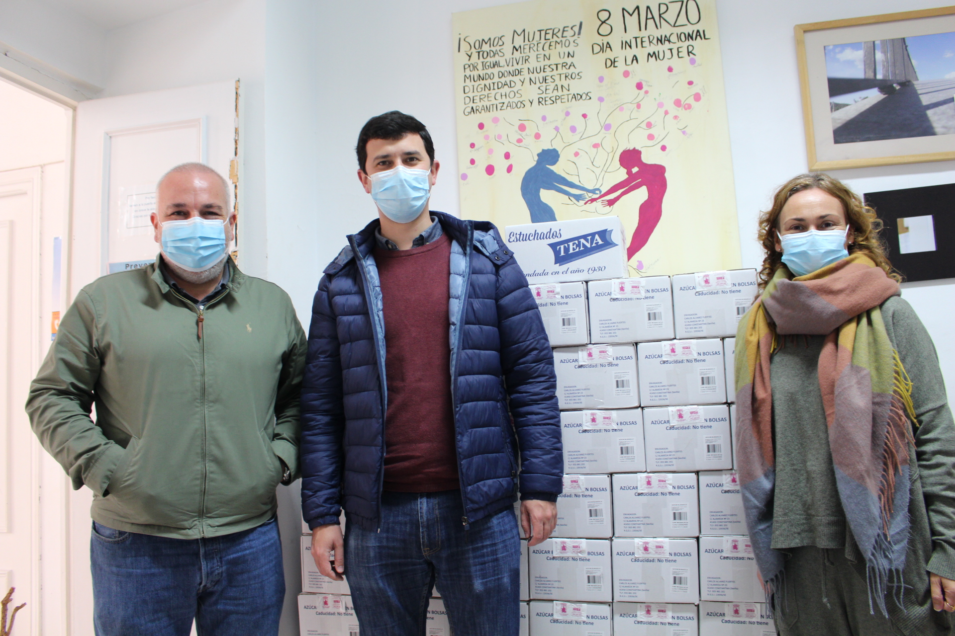 El alcalde de Constantina, Rubén Rivera y la primera teniente de alcalde, Sonia Ortega han recibido esta semana de manos del empresario local Carlos Álvarez, los azucarillos personalizados elaborados por su empresa Estuchados Tena y que forman parte de la Campaña del 25N promovida por el Centro Municipal de la Mujer de Constantina.