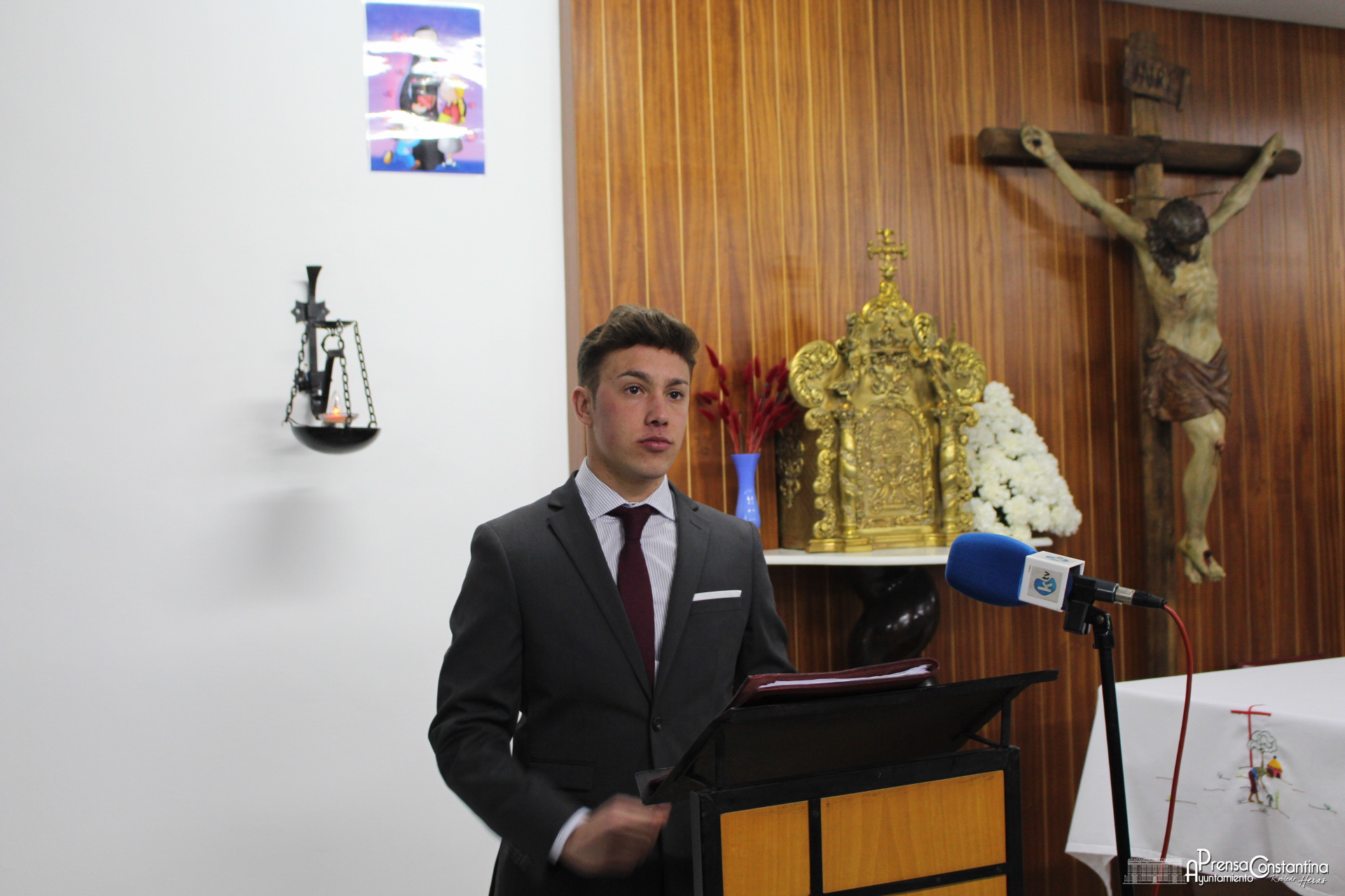 Un pregón sentido, crítico y comprometido a cargo deljoven Álvaro Núñez Aguado fue el que pudieron disfrutar los asistentes congregados en la capilla del Colegio Sagrado Corazón. La Teniente de Alcalde, Mercedes Campos, representaba oficialmente al Ayuntamiento y jóvenes cofrades de la Hermandad junto a su Hermano Mayor le hacían entrega de un cuadro commemorativo al pregonero al finalizar.