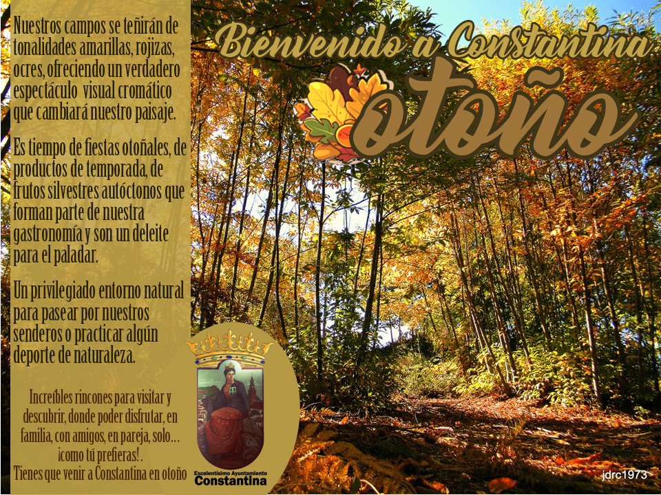 Ha entrado el otoño en Constantina, estación llena de colores y sabores. Tiempo ideal para disfrutar de nuestro entorno natural, tiempo ideal para visitar Constantina.Es un mensaje del Ayuntamiento de Constantina