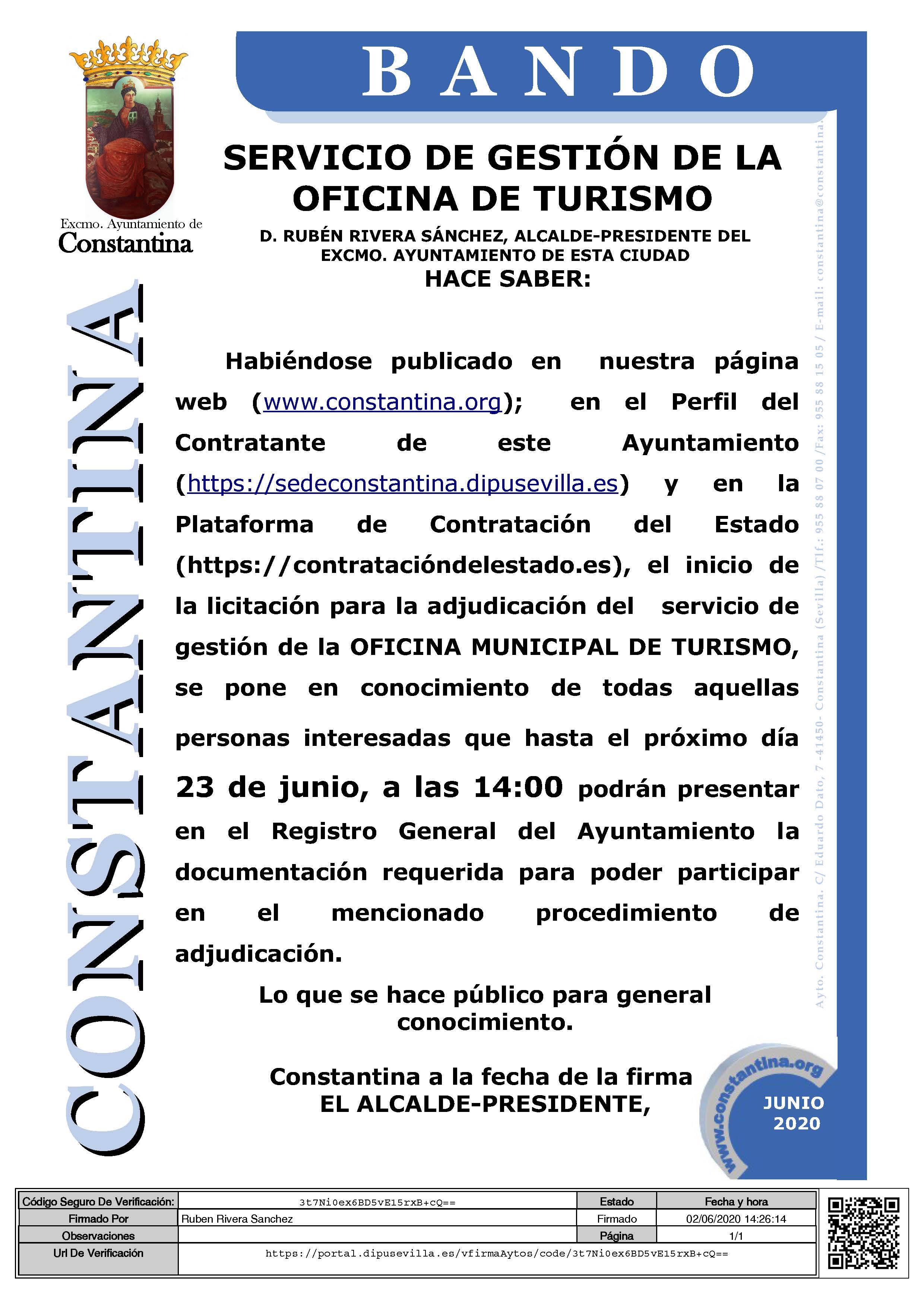 Bando: Servicio de gestión de la Oficina de Turismo de Constantina.