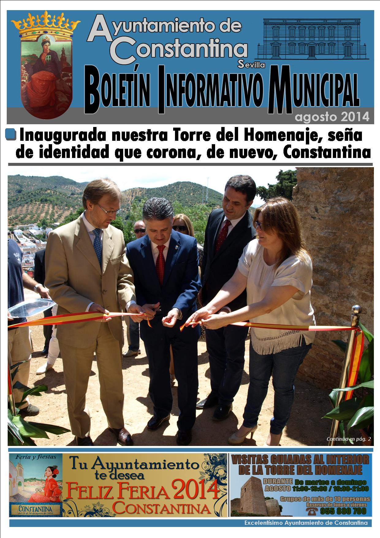 Informamos que ya se encuentra disponible la publicación digital del Boletín Informativo Municipal del Excelentísimo Ayuntamiento de Constantina correspondiente al mes de agosto de 2014, que ya ha salido a la calle y está siendo repartido en estos días.