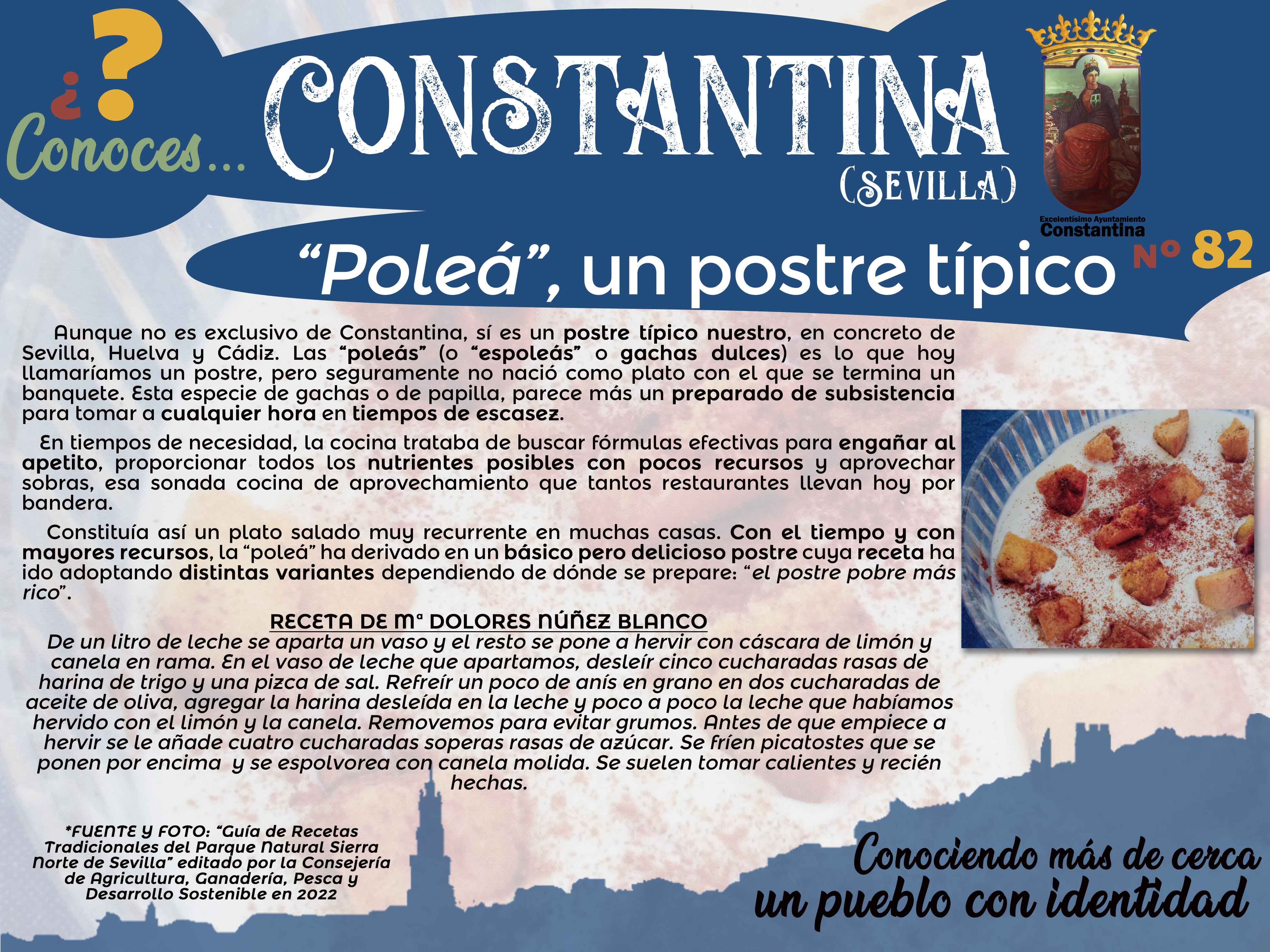 ¿CONOCES CONSTANTINA...? Nº 82: "LAS POLEÁS, UN POSTRE TÍPICO DE CONSTANTINA"Curiosidades de nuestra localidad, anécdotas y datos interesantes para conocer algo más nuestro municipio: un pueblo con identidad.Ayuntamiento de Constantina