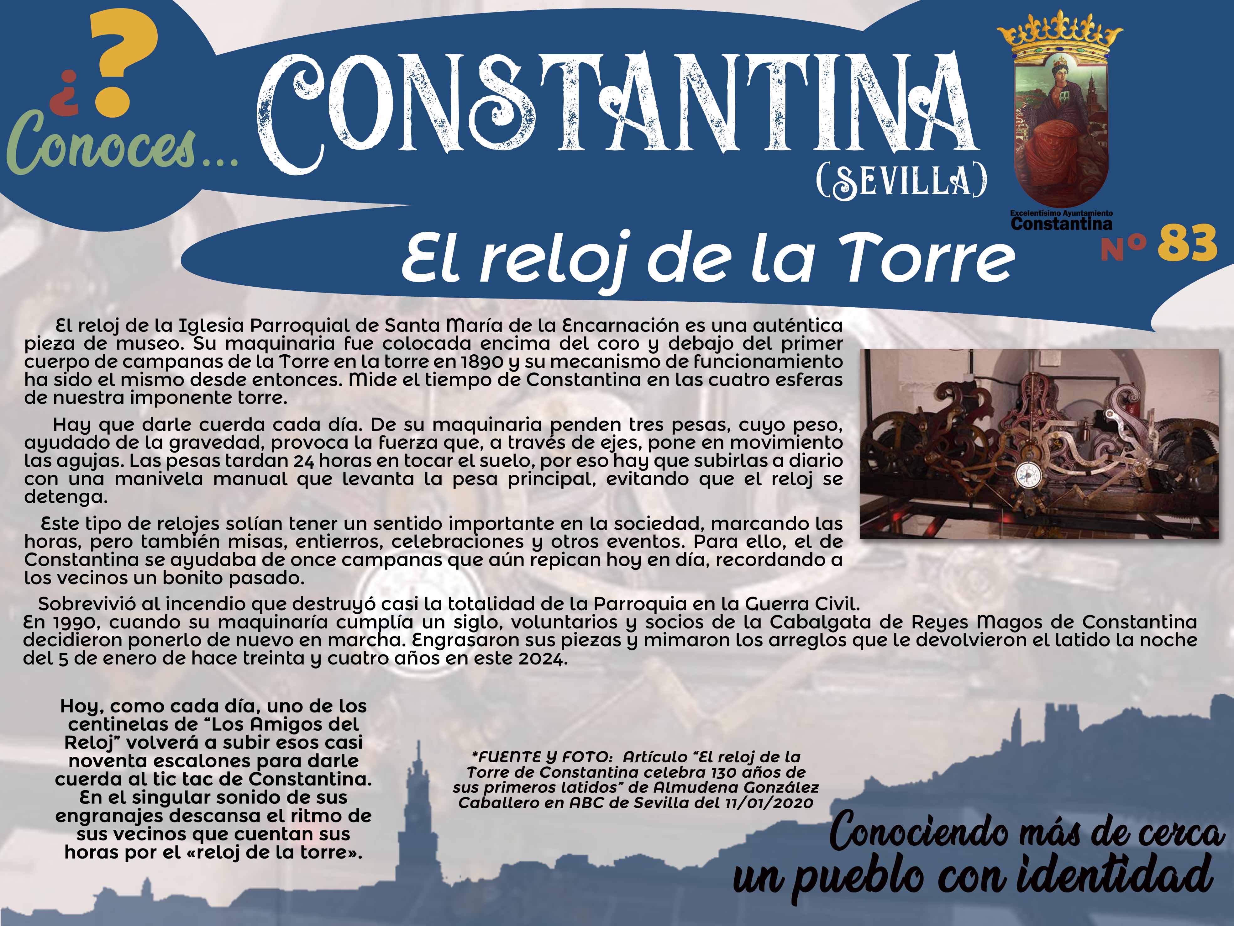 ¿CONOCES CONSTANTINA...? Nº 83: "EL RELOJ DE LA TORRE"Curiosidades de nuestra localidad, anécdotas y datos interesantes para conocer algo más nuestro municipio: un pueblo con identidad.Ayuntamiento de Constantina