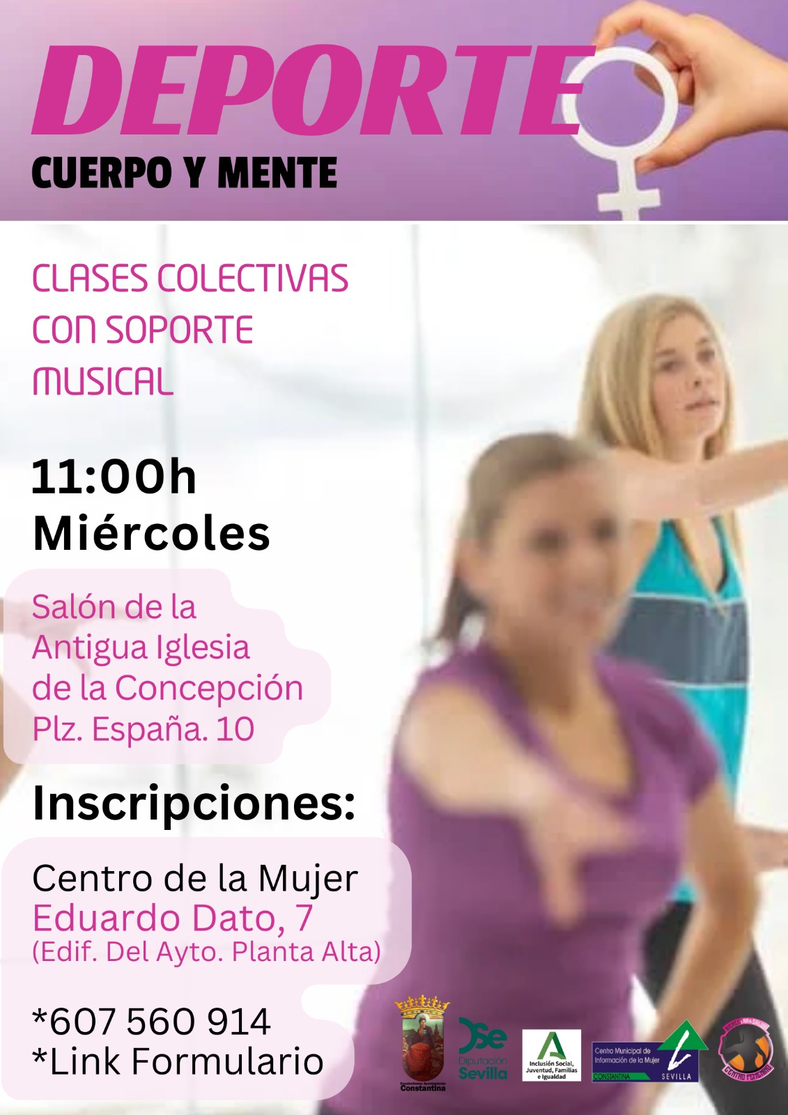 El Centro de la Mujer del Ayuntamiento de Constantina te invita a participar de unas clases colectivas de deporte con soporte musical.