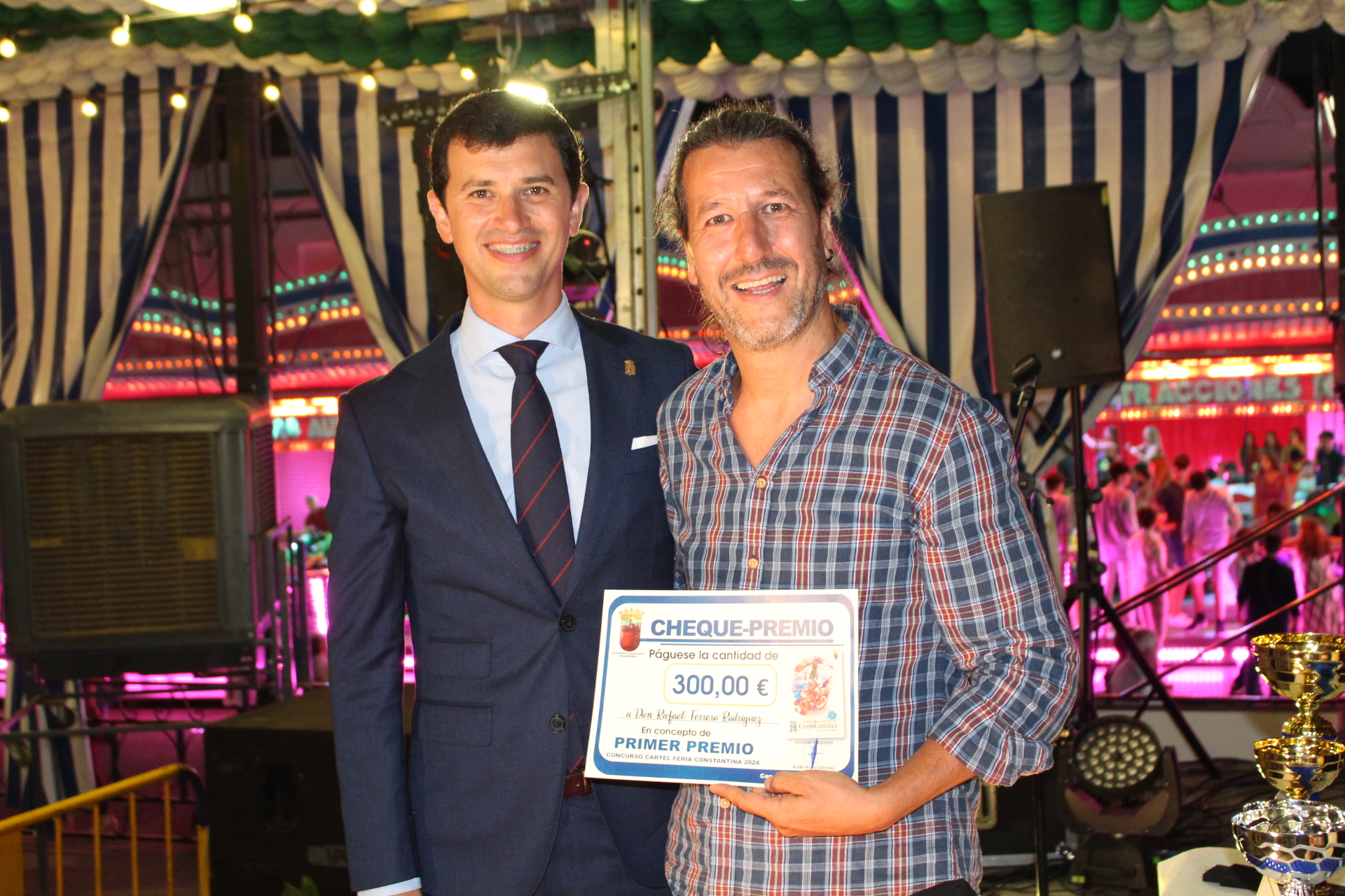 El ganador del cartel de Feria 2024, Rafael Ferrero Rodríguez recogía su premio valorado en 300 euros y los premiados con accésit Fran González y Carlos de la Cruz no pudieron personarse.