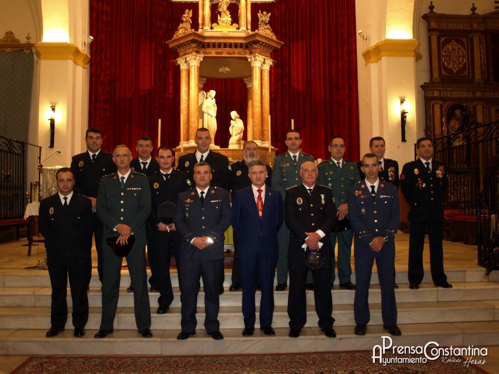 El señor Cura Párroco, Javier Martínez, ofició la ceremonia religiosa celebrada en nuestra parroquia y a la que asistieron todos los miembros de la corporación muncipal. Estuvo presidida por el Alcalde de Constantina, Mario Martínez , al que acompañaban el Jefe de la Policía Local, José Antonio Fernández León , el Comandante Jefe del EVA-3, el Capitán de la Guardia Civil así como el resto de la plantilla de la Policía Local, compañeros de otros cuerpos, como la Guardia Civil y la Policía Nacional, familiares y amigos.