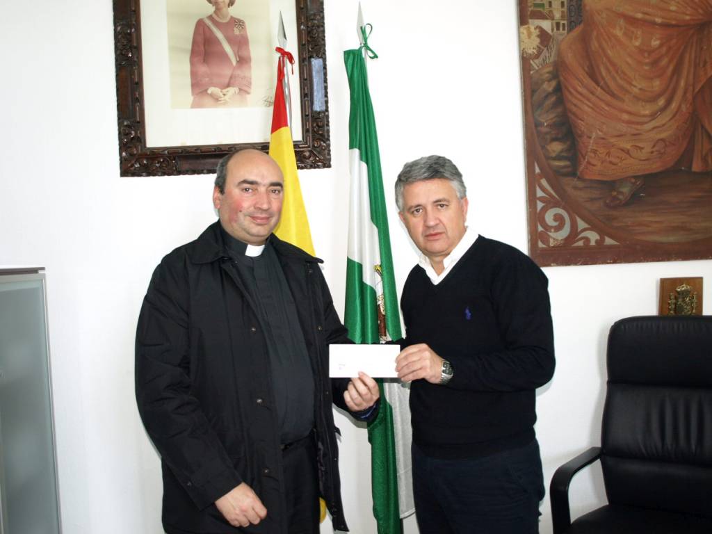 El Alcalde de Constantina, Mario Martínez, en nombre del Ayuntamiento, ha hecho entrega esta mañana al Cura-Párroco de la localidad, Javier Martínez, de un cheque con una aportación económica que irá destinada a Cáritas Parroquial.