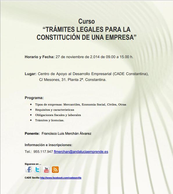 El CADE Constantina te trae el Curso "Trámites legales para la constitución de una empresa": inscríbete