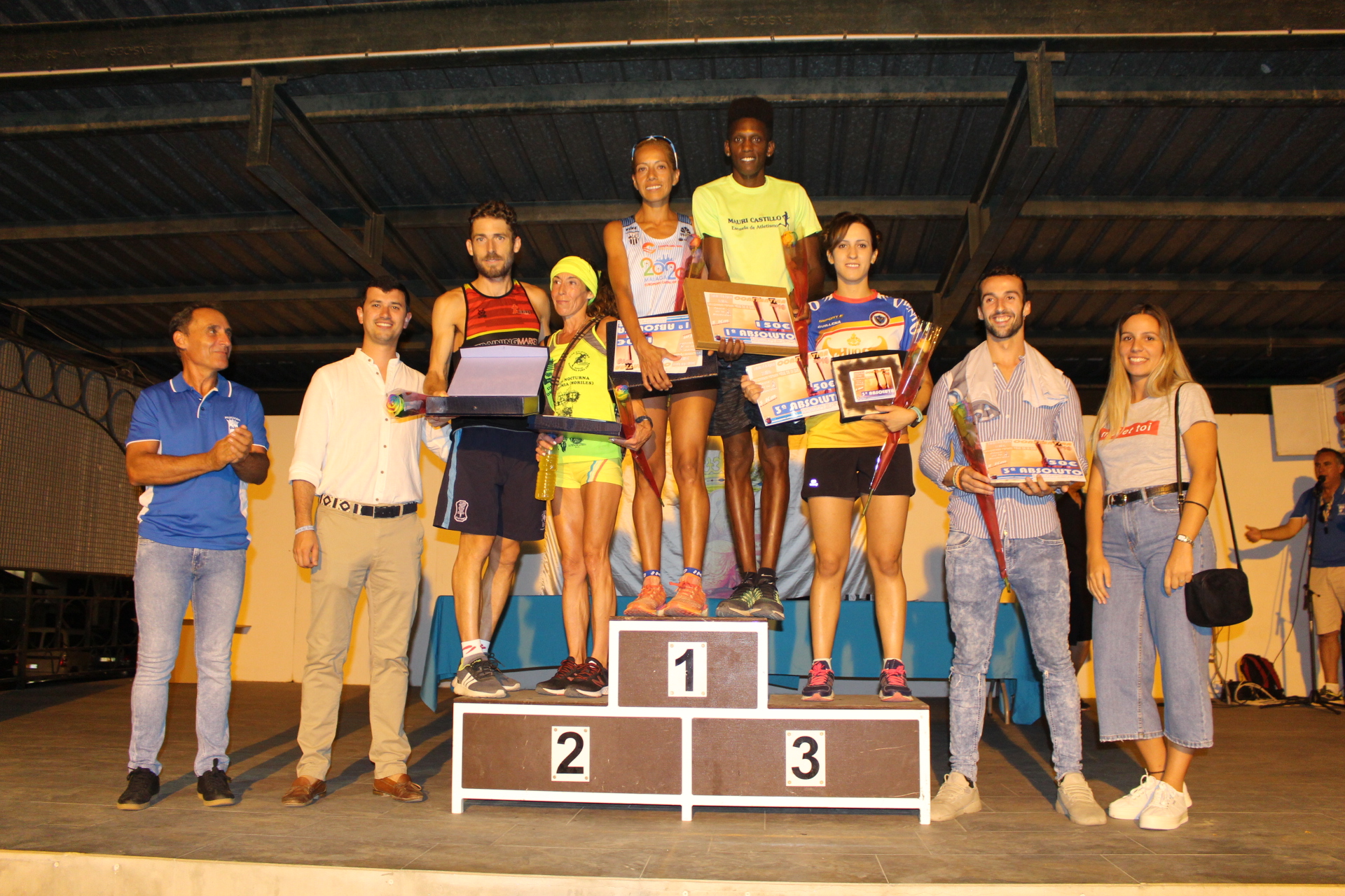 Este año, la primera plaza del pódium absoluto estaba presidida por el atleta MAURIS CASTILLO (00:15:08) , campeón absoluto masculino de esta edición de la Carrera Popular Valle de la Osa. En segunda posición, cruzó la meta nuestro atleta local RUBÉN ÁLVAREZ (00:15:31) y completando el pódium JASET VELÁZQUEZ (00:15:43) . En femenino, la primera plaza fue para JANINE LIMA (00:18:38) , seguida de MARÍA BELMONTE (00:18:54), completando el pódium HASSANIA BARRHOUSS (00:20:11) .