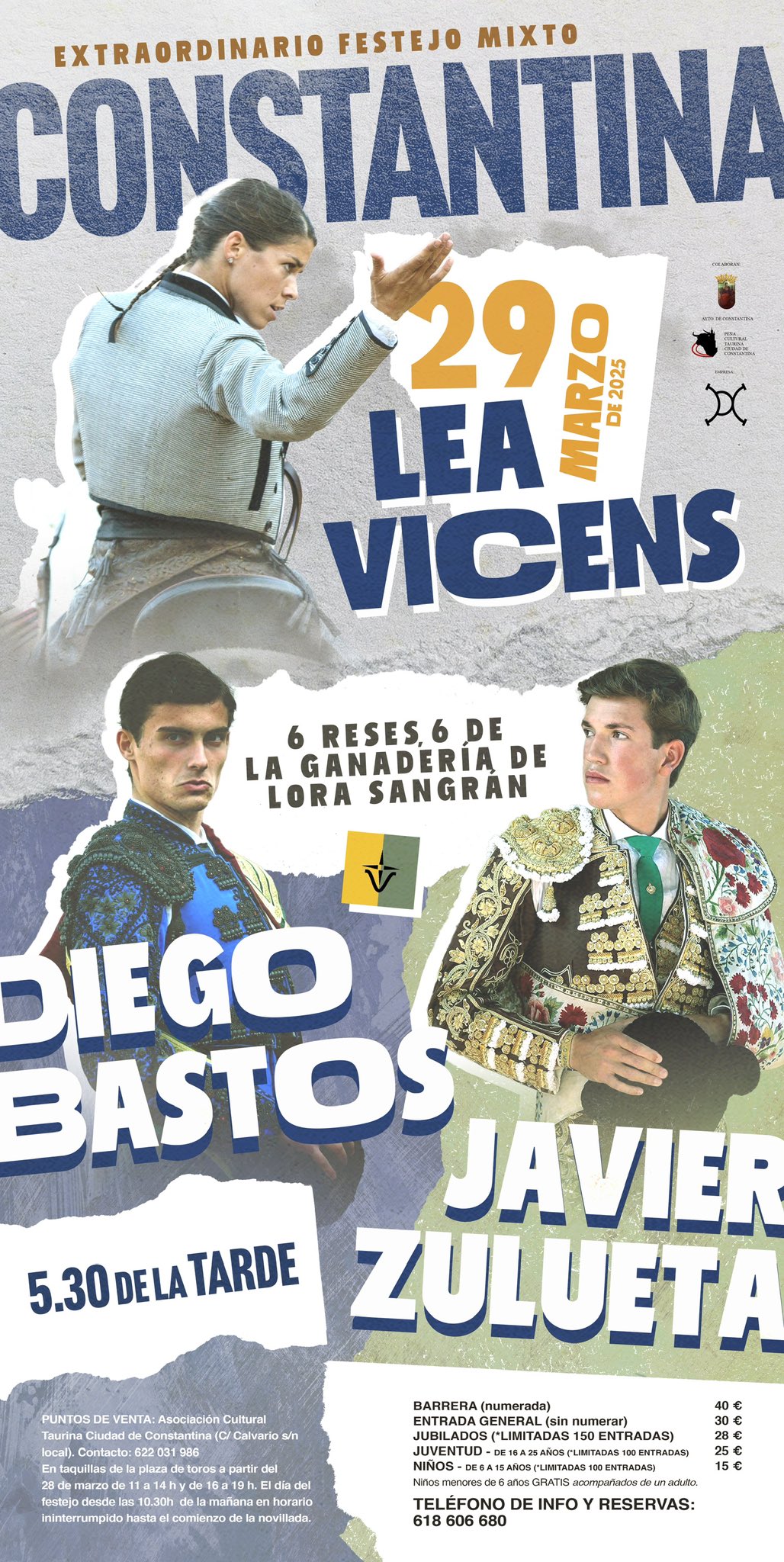 El cartel es el siguiente: 6 reses de Lora Sangrán para la rejoneadora Lea Vicens y los novilleros Diego Bastos y Javier Zulueta.