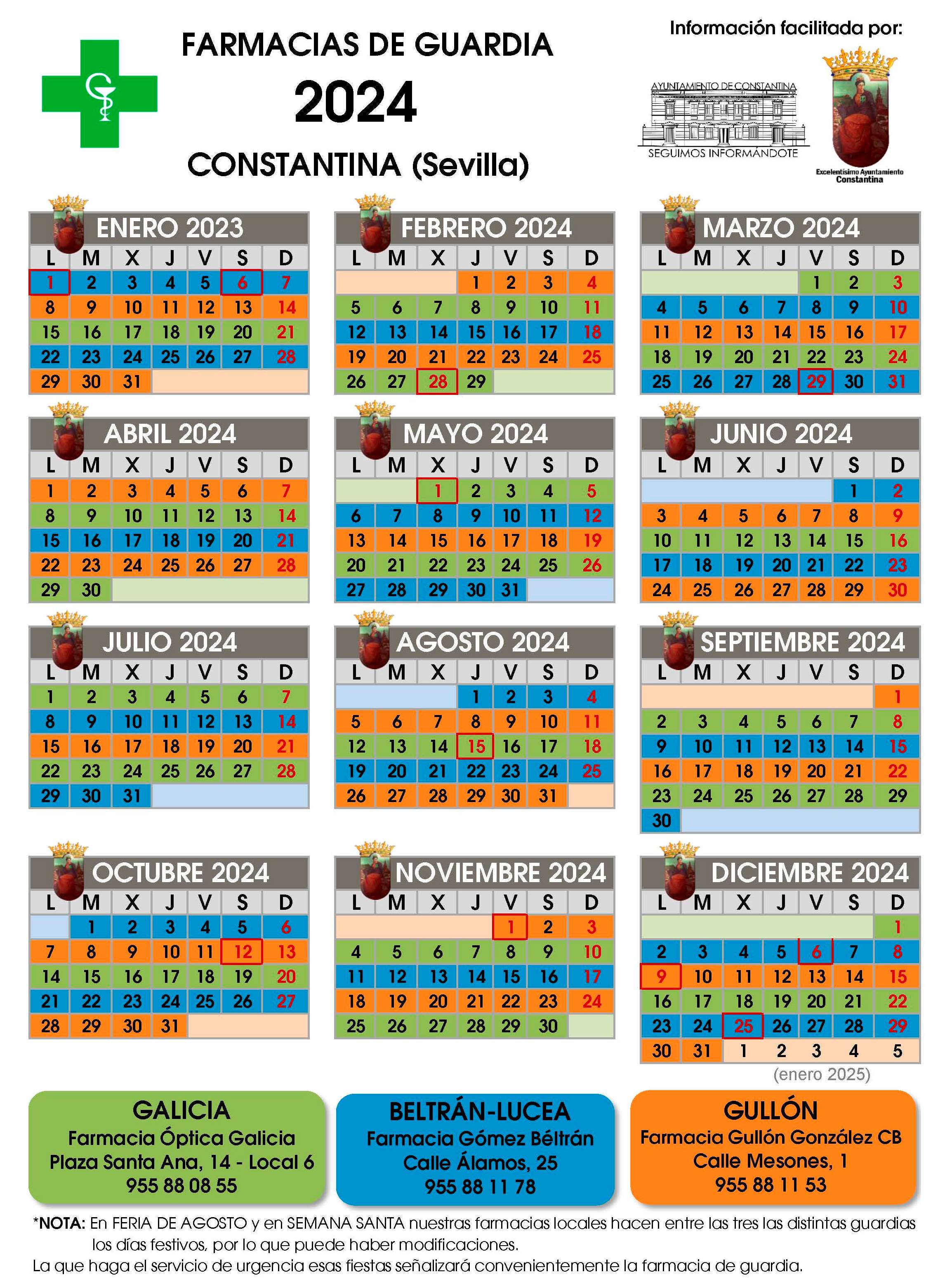 GUARDIAS DE LAS FARMACIAS DE CONSTANTINA PARA EL 2024