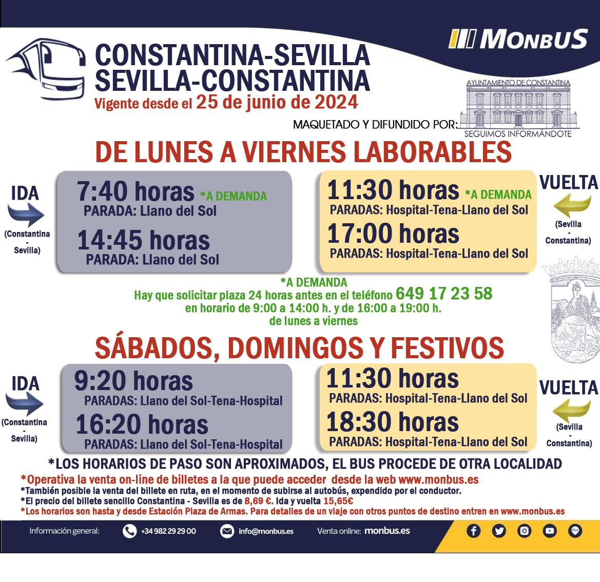Maquetados por el Ayuntamiento de Constantina, facilitados y revisados por Monbus, empresa adjudicataria del servicio.Es un mensaje del Ayuntamiento de Constantina