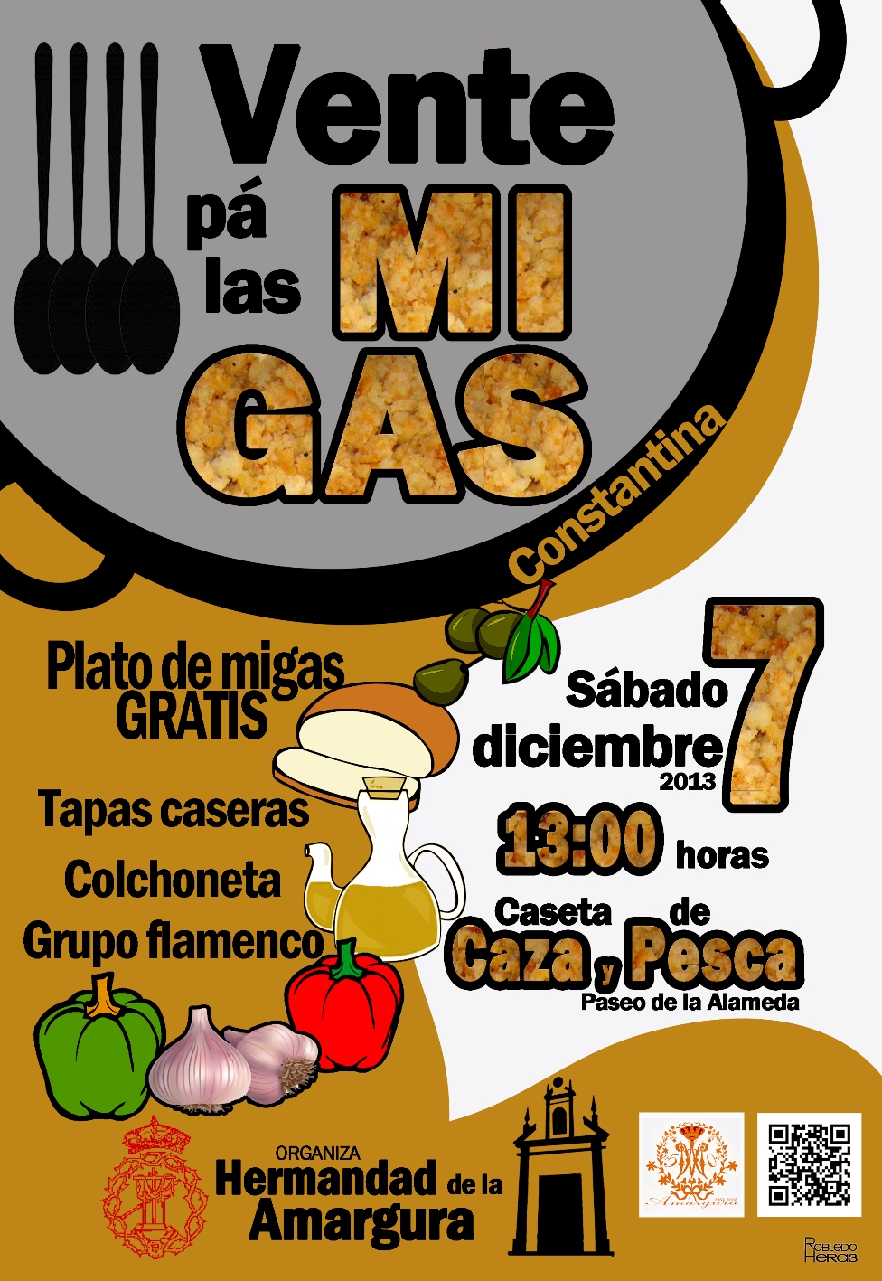 próximo sábado 7 de diciembre la Hermandad de la Amargura te ofrece su IV "Vente pá las Migas" en la Caseta de Caza y Pesca a partir de las 13:00 horas.