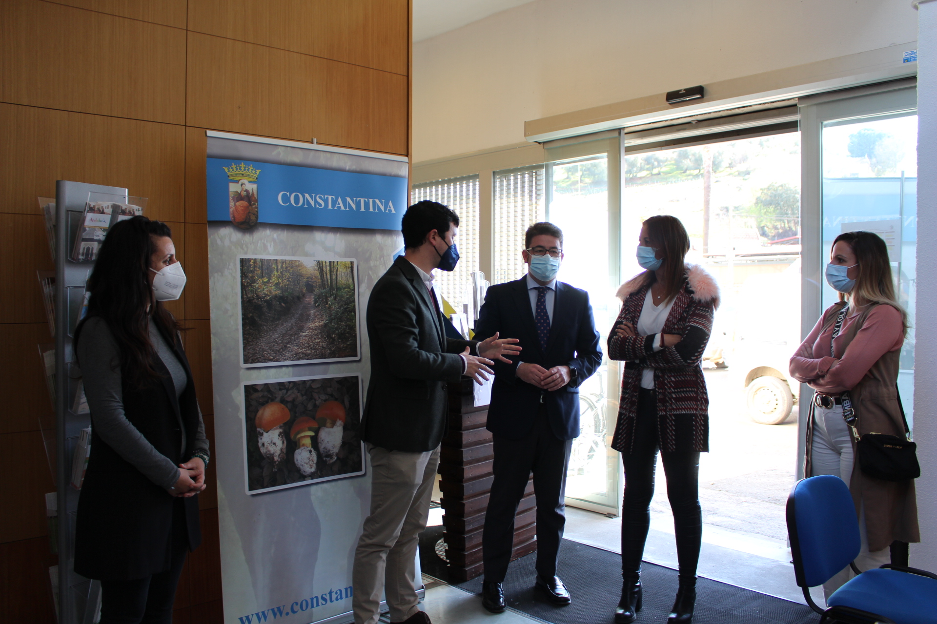 Ayer lunes 15 de marzo, el alcalde de Constantina, Rubén Rivera, acompañado por la delegada de Turismo del Ayuntamiento, Sara Montero, recibían en las dependencias de Alcaldía la visita de Rosa Hernández, delegada territorial de Turismo de la Junta de Andalucía acompañada por el diputado provincial Manuel Benjuumea, con el objetivo de mantener una reunión de trabajo en la que se abordaron distintos asuntos vinculados a las competencias de la Delegación y Consejería de Turismo así como ideas y alternativas para la promoción turística de Constantina.