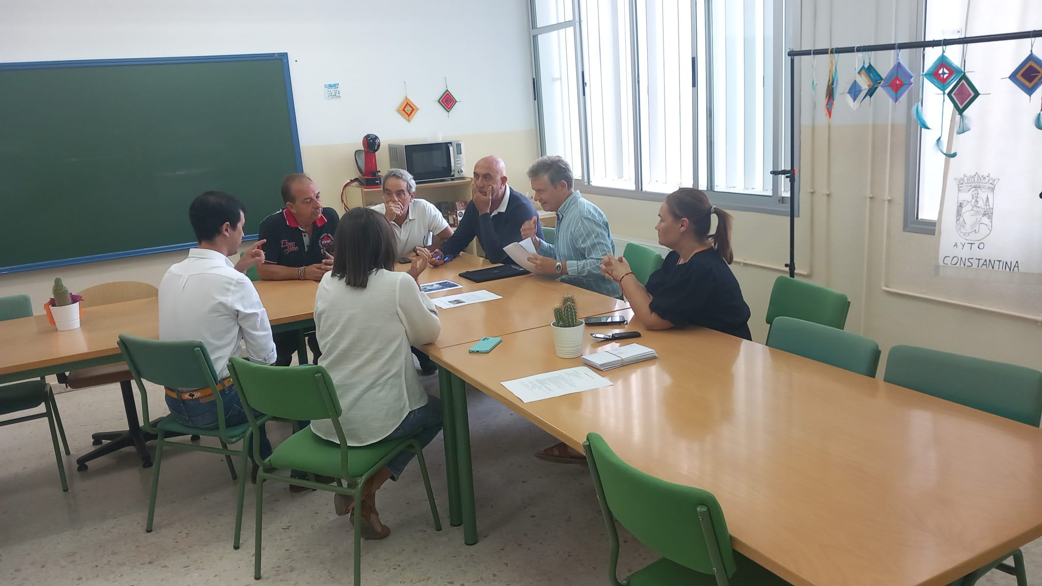 El alcalde de Constantina, Rubén Rivera junto a los tenientes de alcalde Sonia Ortega (Educación) y David Torres (Urbanismo) han mantenido una reunión de trabajo con el arquitecto de Diputación, Jaime Hinojosa y los técnicos Rodolfo Martínez y Gonzalo Santiago, en las instalaciones del C.E.I.P. Valle de la Osa con su directora Rocío Martínez para acordar las actuaciones de mejora que el gobierno municipal ha decidido ejecutar en este centro educativo a través de los próximos planes del PFEA (financiado por Gobierno de España, Junta de Andalucía, Ayuntamiento de Constantina y Diputación de Sevilla).