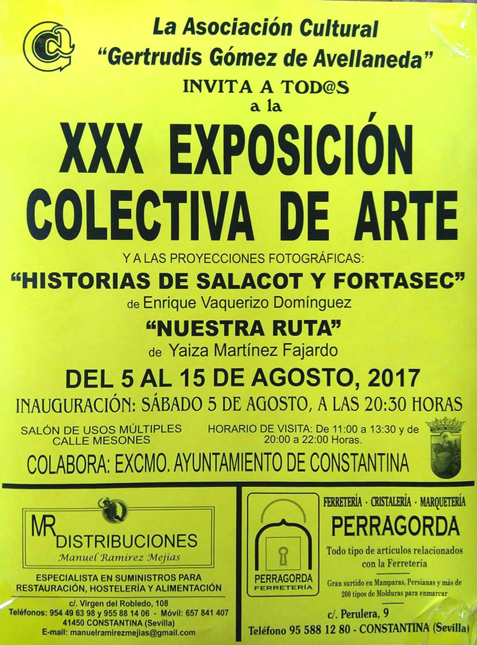 La Asociación Cultural Gertrudis Gómez de Avellaneda, en colaboración con el Excelentísimo Ayuntamiento, nos trae la XXX Exposición Colectiva de Arte cuya inauguración oficial tendrá lugar el próximo sábado 5 de agosto a las 20:30 horas en el Centro Cultural de la Calle Mesones.
