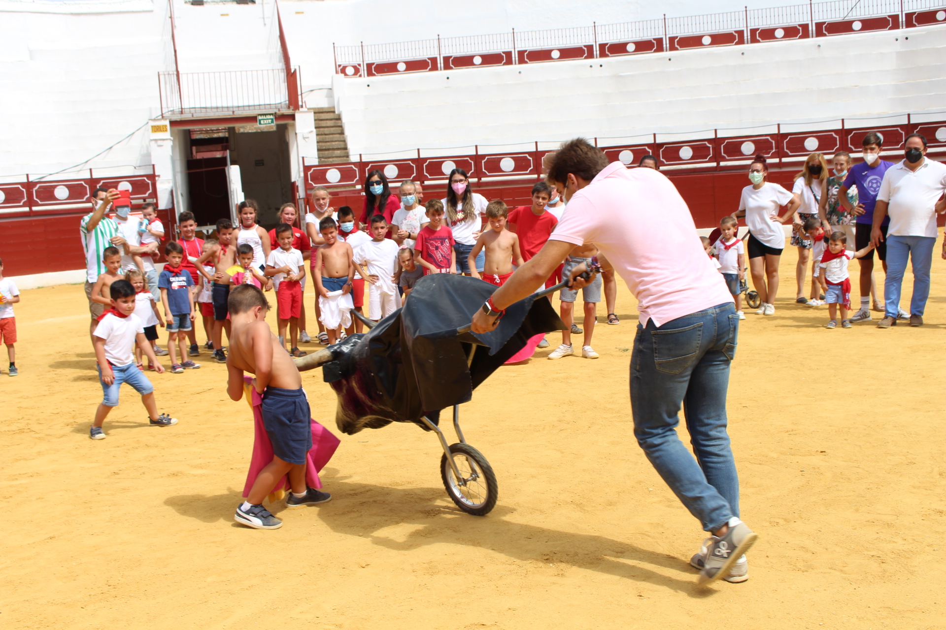 El pasado viernes 13 se celebraba un simpático encierro infantil, en el que nuestros pequeños se divirtieron con unos grandes toros hinchables y carretones taurinos que les hicieron correr por las calles de Constantina y al volver a la plaza de toros pudieron demostrar su arte en el recorte libre.