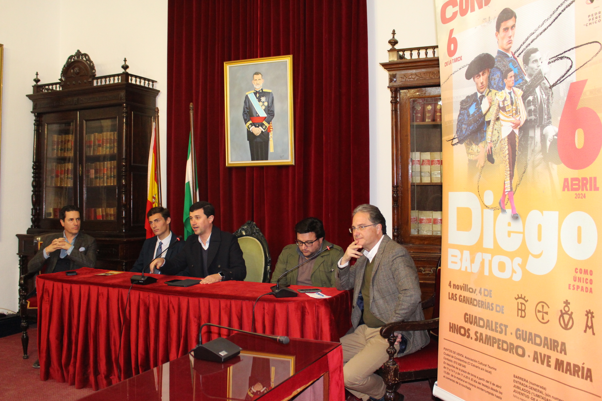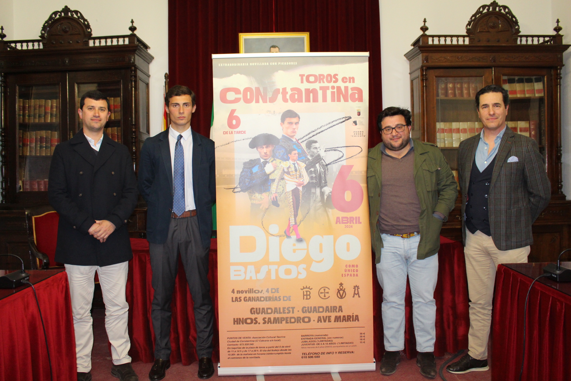 Presentado el pasado jueves 29 de febrero, en el Salón de Plenos del Ayuntamiento, el cartel de la extraordinaria novillada con picadores en Constantina con Diego Bastos como protagonista y único espada para 4 novillos de las ganaderías Guadalest, Guadaira, Hnos. Sampedro y Ave María.