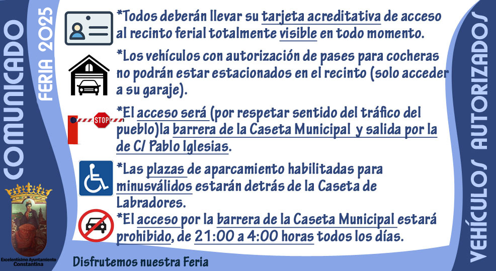 La Delegación de Festejos del Ayuntamiento de Constantina ultima los preparativos y detalles para la tradicional Feria y Fiestas 2025 de nuestra localidad que tendrá lugar del 28 al 31 de agosto. La gran cita estival reunirá diversión, fiesta y alegría para que propios y visitantes disfrutemos de nuestra esperada Feria de Constantina 2025.