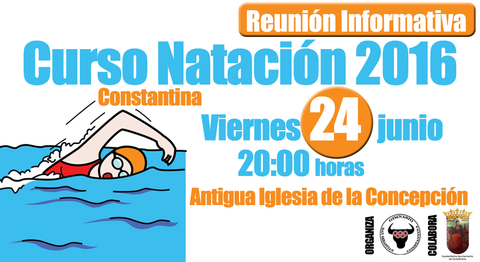 Anunciamos una modificación de última hora en el lugar de celebración de la reunión informativa del Curso de Verano de Natación 2016 que organiza el Gimnasio San Sebastián en colaboración con el Ayuntamiento de Constantina .