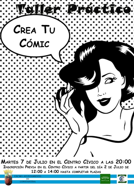 7 JULIO. TALLER PRÁCTICO “ELABORA TU PROPIO CÓMIC” . De la mano del ilustrador profesional de Cómic Abel Ippólito, se nos enseñará a elaborar y dibujar cómics. Toda una tarde de diversión de la que podremos disfrutar si os apuntáis en el Centro Cívico Rafael Martos Quinto en horario de 12:00 a 14:00 a partir del próximo jueves 2 de julio. Las plazas son limitadas y se inscribirán por riguroso orden de inscripción.