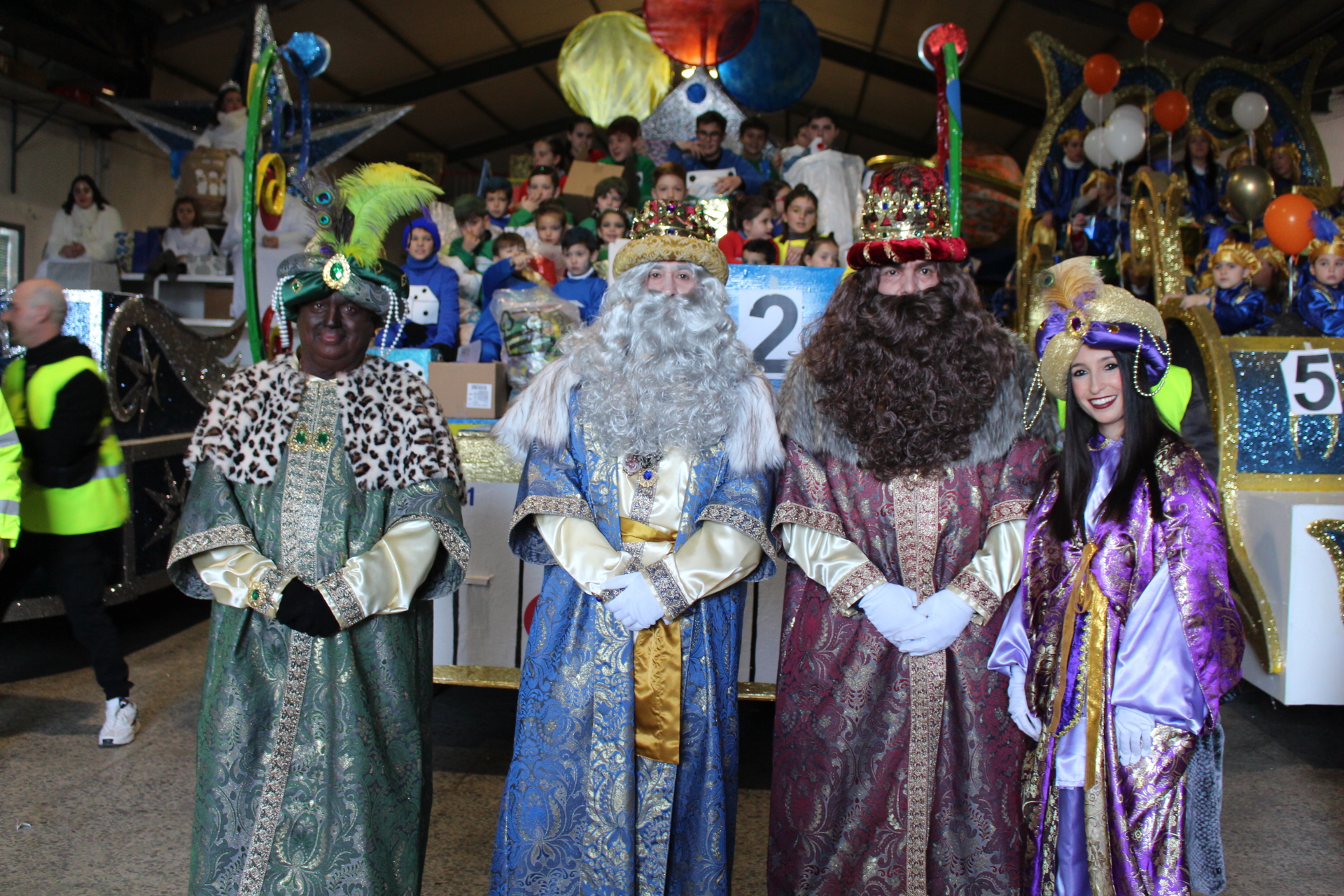 Este año el cortejo estrena dos carrozas, que serán el deleite de todos: El Templo Griego donde van los entrañables componentes de ASNADIS, y el trono del Rey Melchor, basado en un diseño del año 1982. Todas las demás carrozas del cortejo siempre son también retocadas y remodeladas parcialmente.