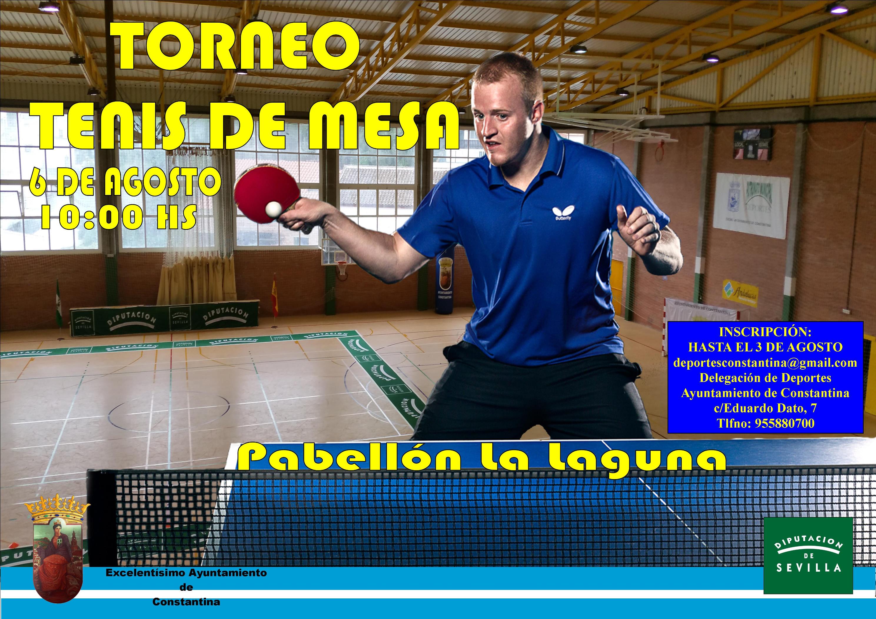 La Delegación de Deportes del Excelentísimo Ayuntamiento de Constantina, en colaboración con la Diputación de Sevilla, organiza el Torneo de Tenis de Mesa Verano 2016 el próximo sábado día 6 de agosto en el pabellón municipal de La Laguna, a las 10 de la mañana .