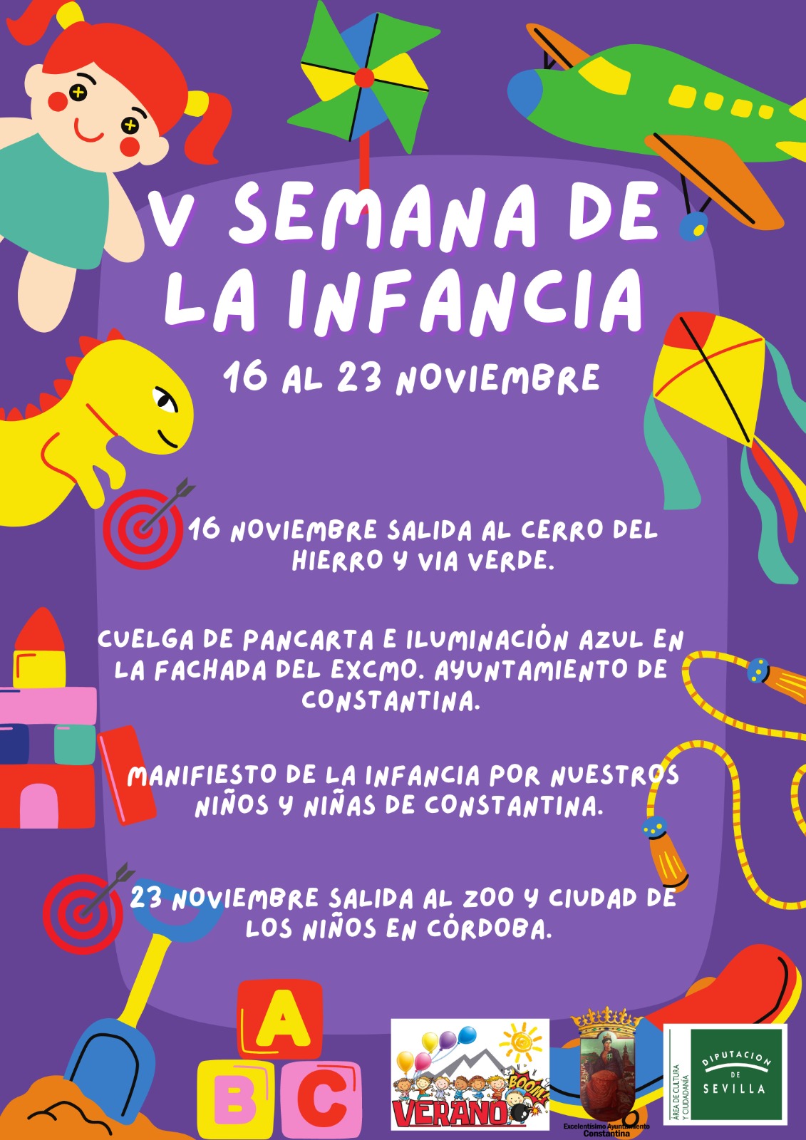 Con motivo del Día de la Infancia 2024, el programa Verano Boom y la delegación de Juventud del Ayuntamiento de Constantina, en colaboración con la Diputación de Sevilla, organiza del 16 al 23 de noviembre la V Semana de la Infancia que incluirá una serie de actividades.