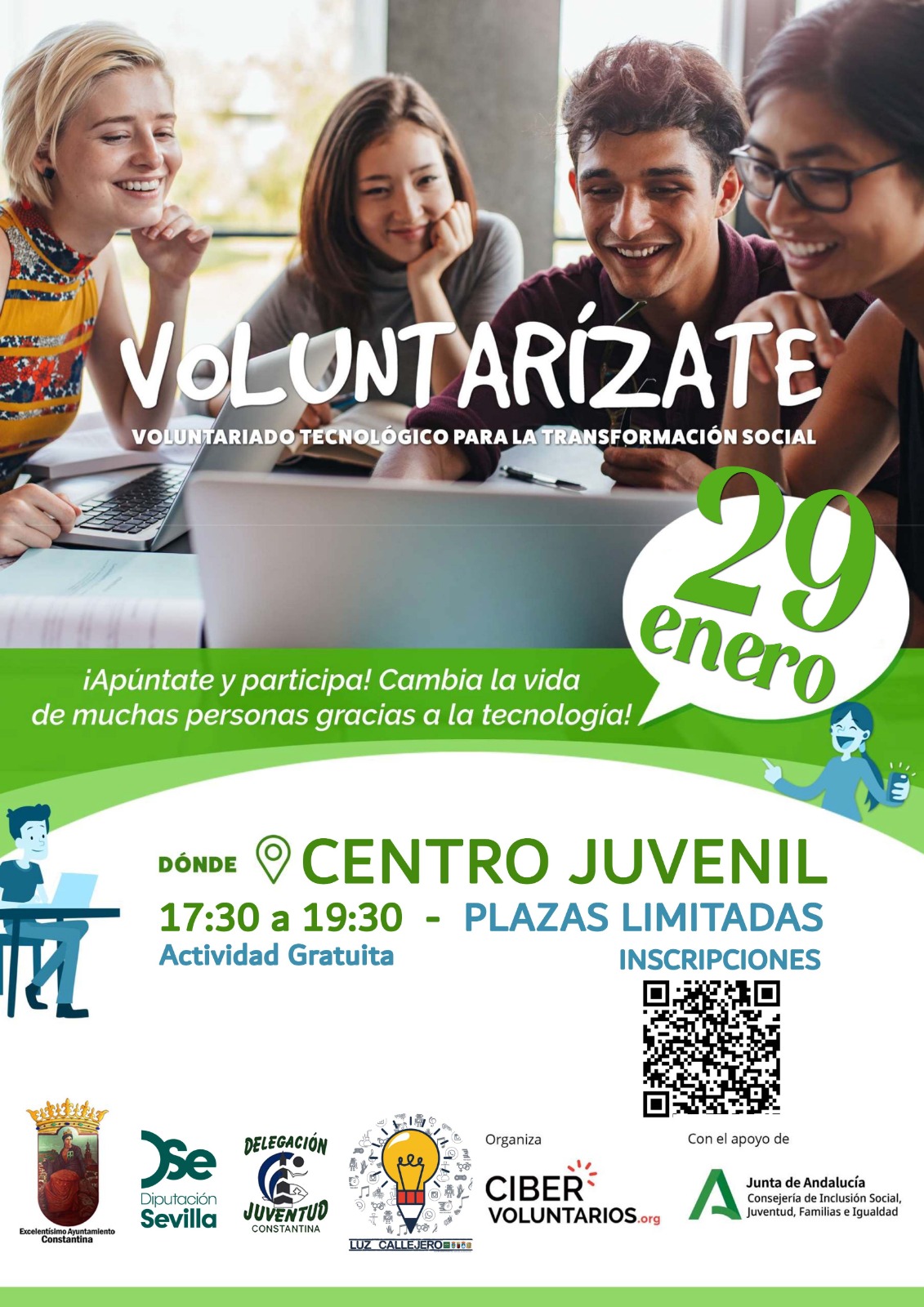 Voluntarízate es un taller destinado a jóvenes de 12 a 25 años, en el que a través de la Fundación Cibervoluntarios y sus profesionales, formarán a los participantes en las habilidades necesarias para ser un buen voluntario, cómo participar en las actividades, como promover y participar de forma correcta y sobre todo como ser una ciudadanía participativa.