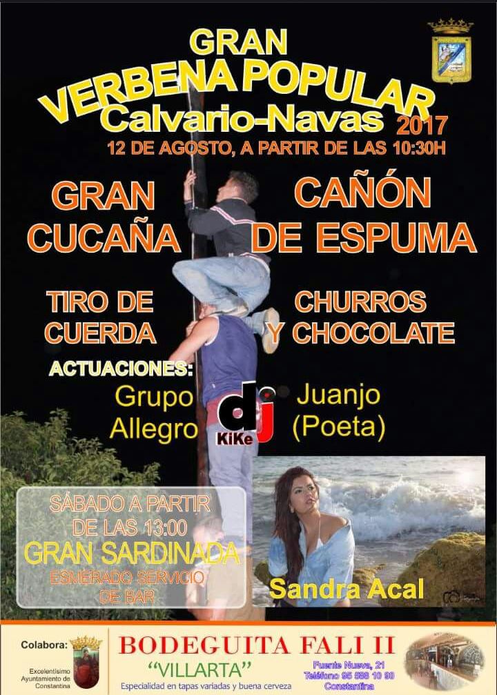 Este próximo sábado 12 de agosto, tendrá lugar nuestra tradicional Verbena del Calvario-Navas 2017. La Asociación de Vecinos Calvario-Navas, con la colaboración del Ayuntamiento de Constantina, organiza para este sábado 12 de agosto un completo programa, que comenzará a partir de las 10:30 horas.