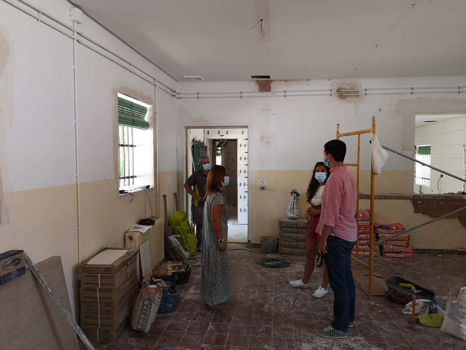 El alcalde de Constantina, Rubén Rivera, acompañado por la teniente de alcalde, Sonia Ortega y la concejal de Educación, Natalia Espínola, han visitado esta semana el avance de las obras del comedor escolar en el C.E.I.P. Valle de la Osa de Constantina que van a buen ritmo de ejecución y pueden estar finalizadas en un plazo breve de tiempo.