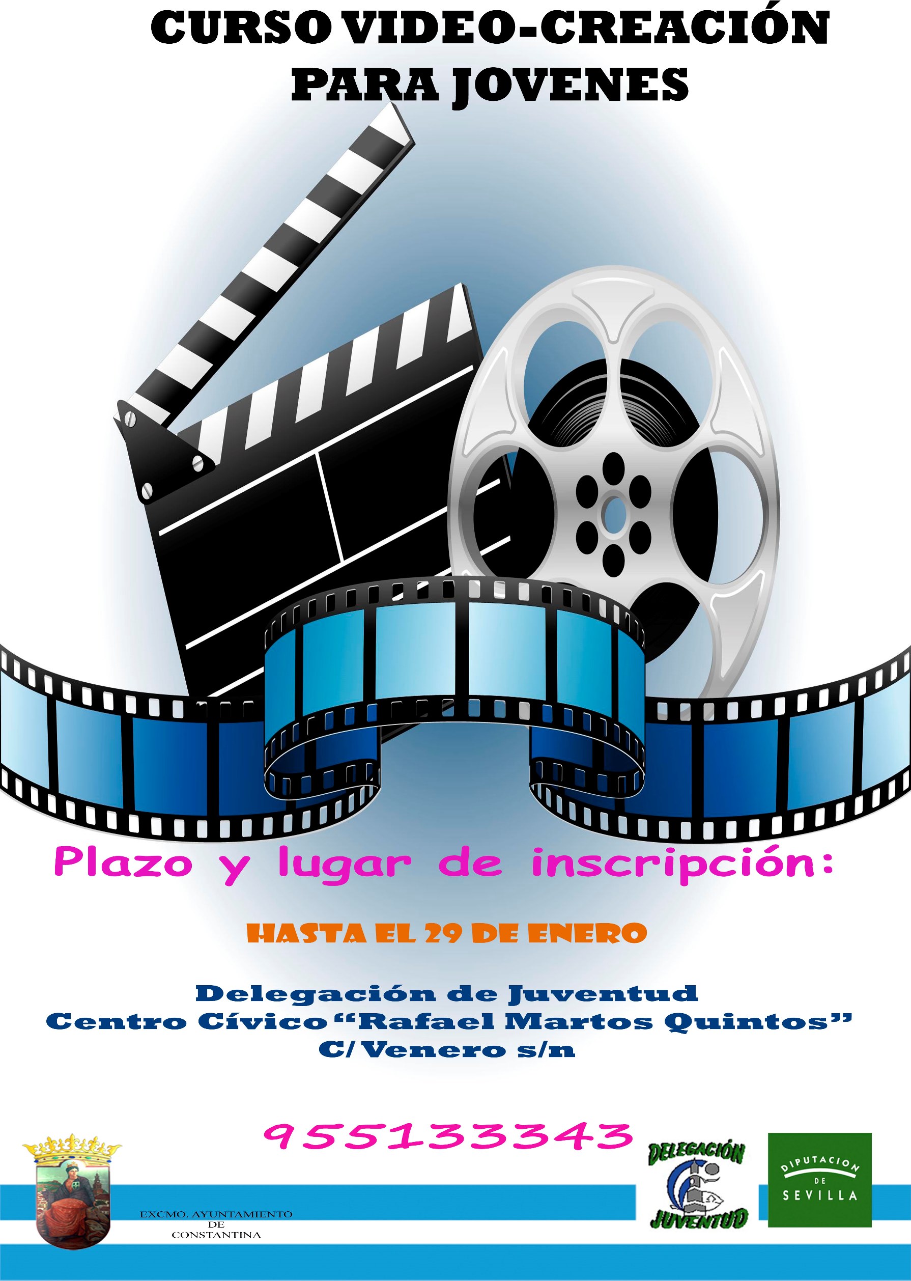 La Delegación de Juventud del Excelentísimo Ayuntamiento de Constantina pone en marcha un Curso de "Vídeo-Creación para jóvenes". El plazo de inscripción para participar ya está abierto y finalizará el próximo lunes 29 de enero.