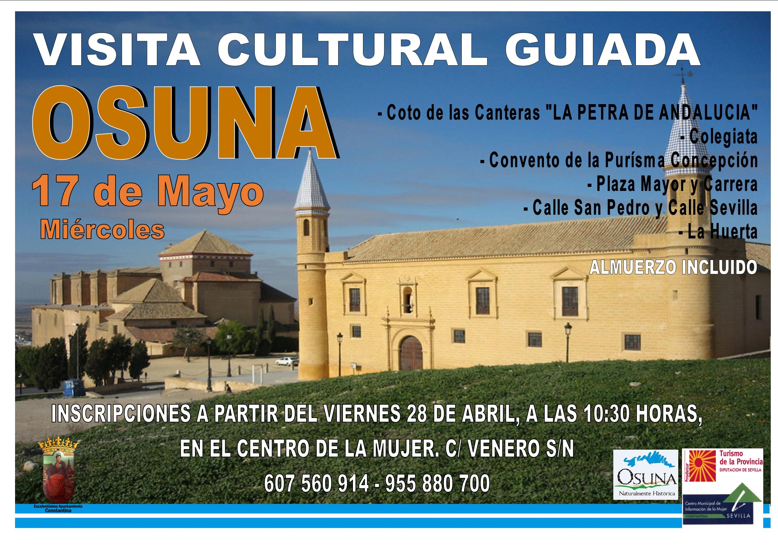El Centro Municipal de Información a la Mujer del Área de Igualdad del Excelentísimo Ayuntamiento de Constantina, te propone un viaje cultural a Osuna para el miércoles 17 de mayo. Hoy, viernes 28 de abril, a partir de las 10:30 horas, abre el plazo de inscripción.
