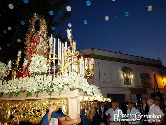 El Equipo de Gobierno a la cabeza y el resto de autoridades de la Corporación Municipal, junto a una representación de todas las Hermandades de la localidad, formaban el cortejo encabezado por la Patrona, portada por los costaleros, que recorrió, triunfalmente, las principales calles de Constantina luciendo sus mejores galas.
