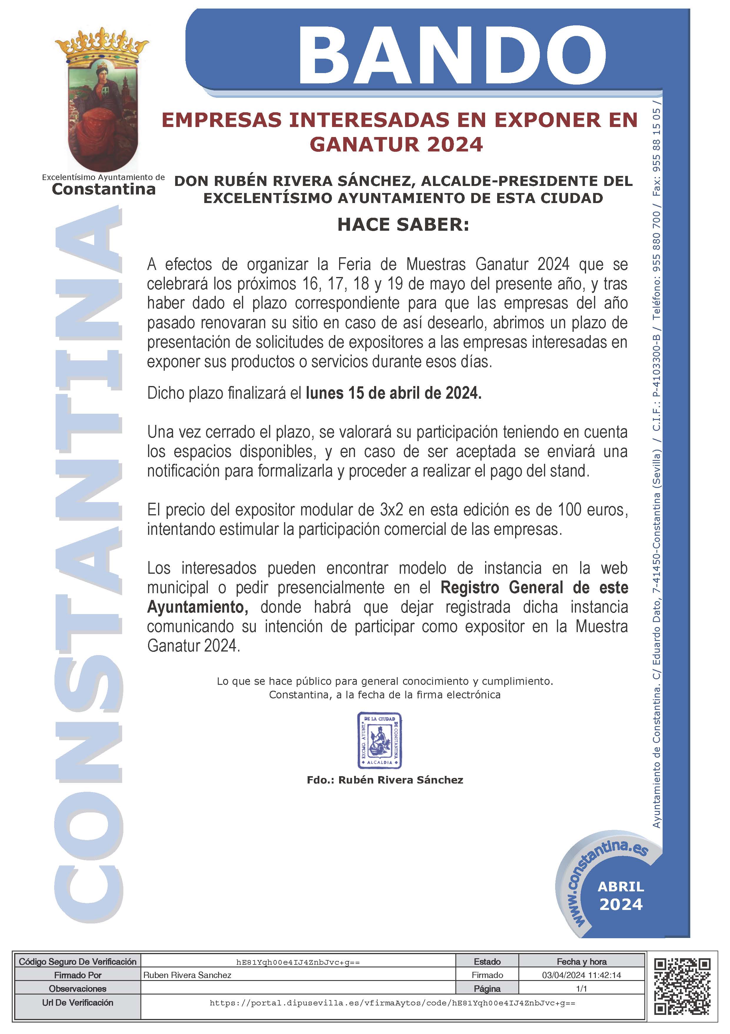 BANDO CONSTANTINA: EMPRESAS INTERESADAS EN EXPONER EN GANATUR 2024
