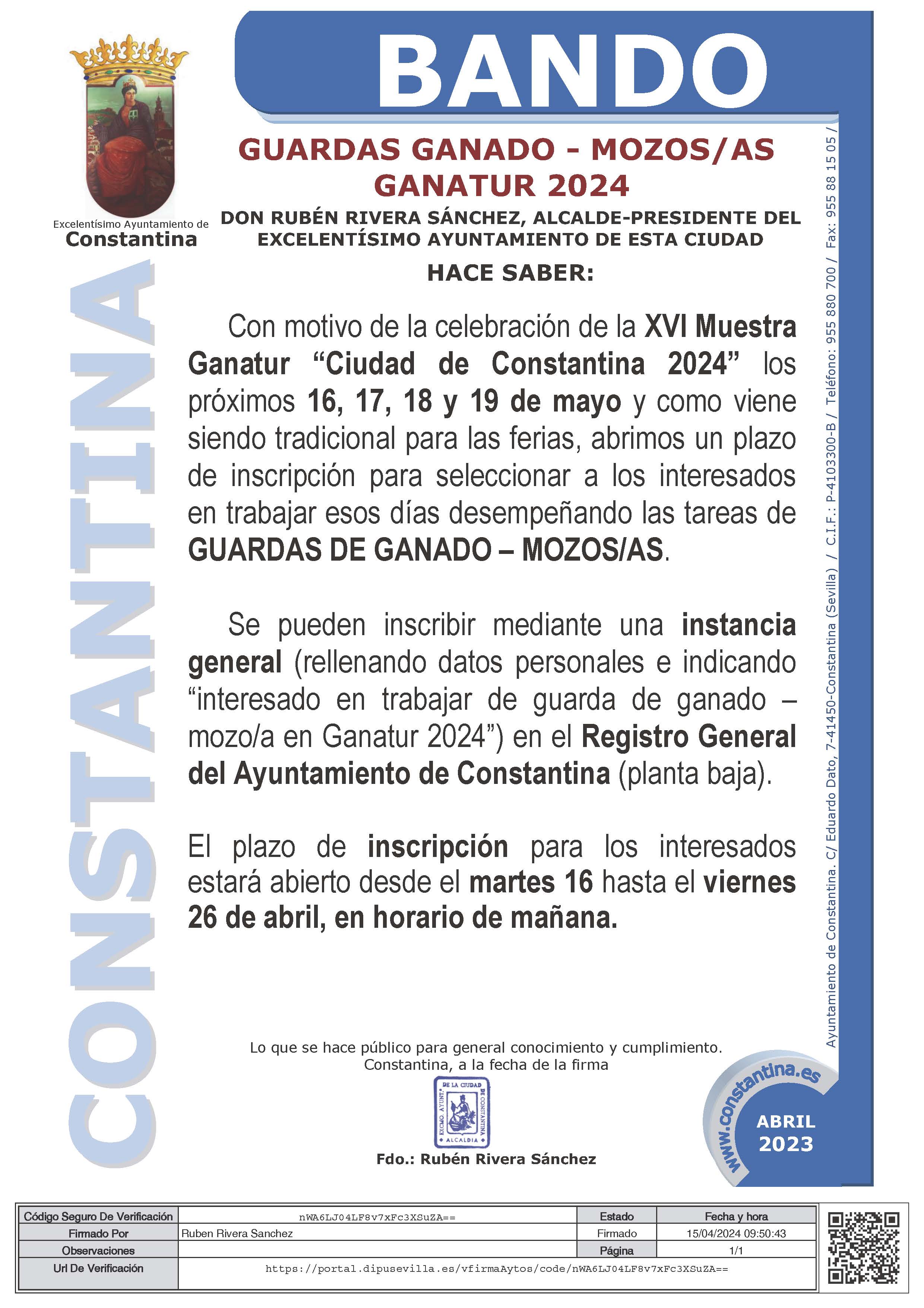 BANDO CONSTANTINA: GUARDAS GANADO - MOZOS/AS GANATUR 2024