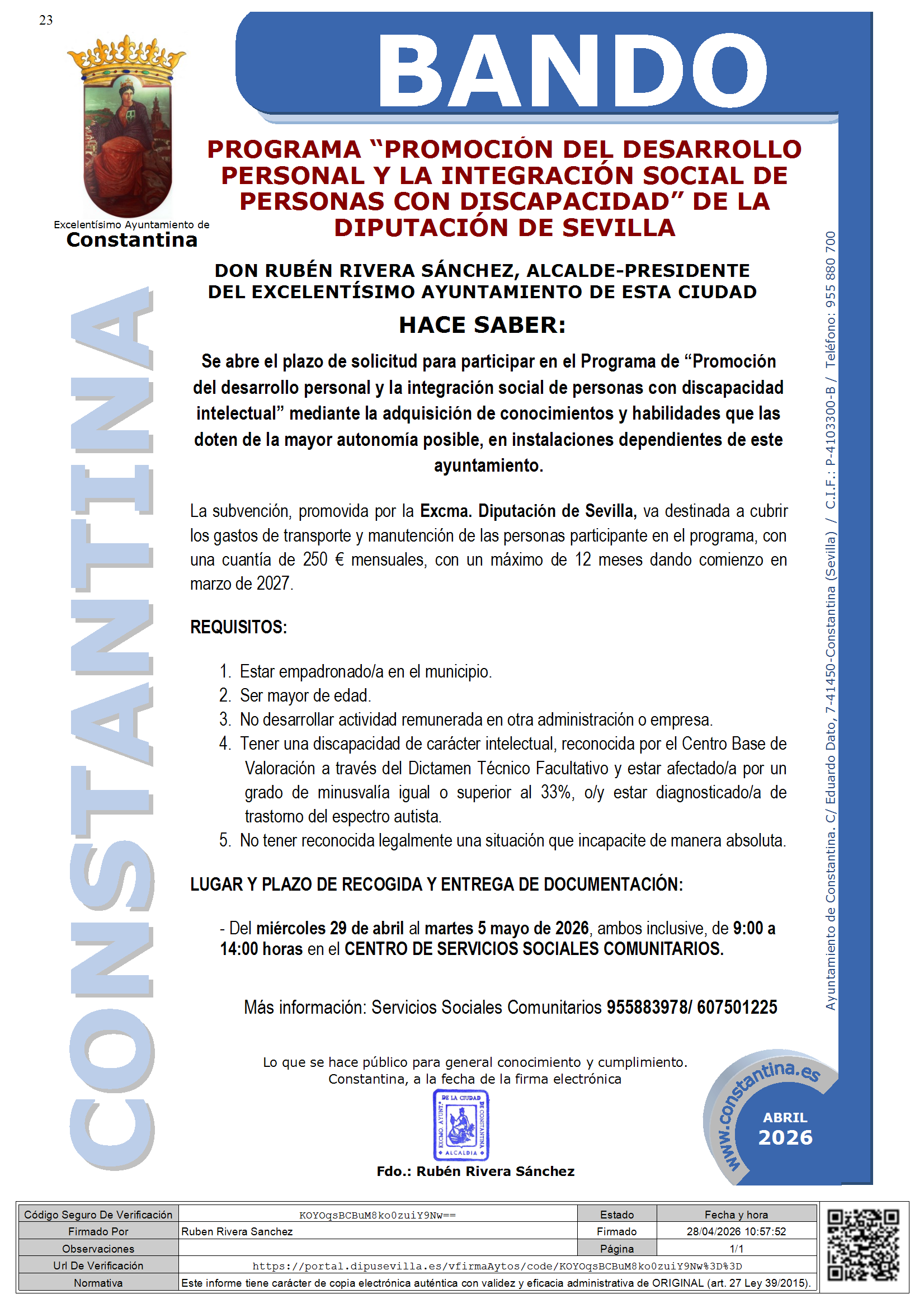 | BANDO CONSTANTINA Programa de Integracion Social de Personas con Discapacidad Intelectual.report | 212,86 KB |