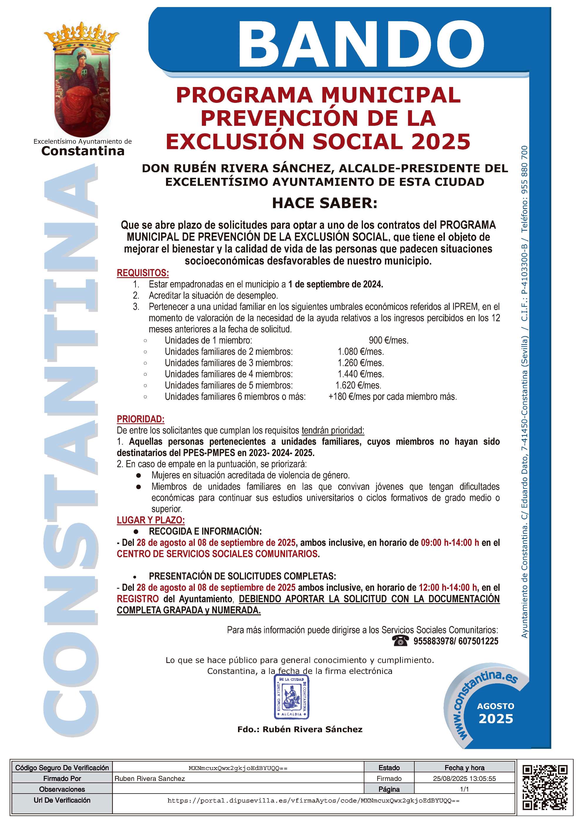BANDO: PROGRAMA MUNICIPAL PREVENCIÓN DE LA EXCLUSIÓN SOCIAL CIONSTANTINA 2025