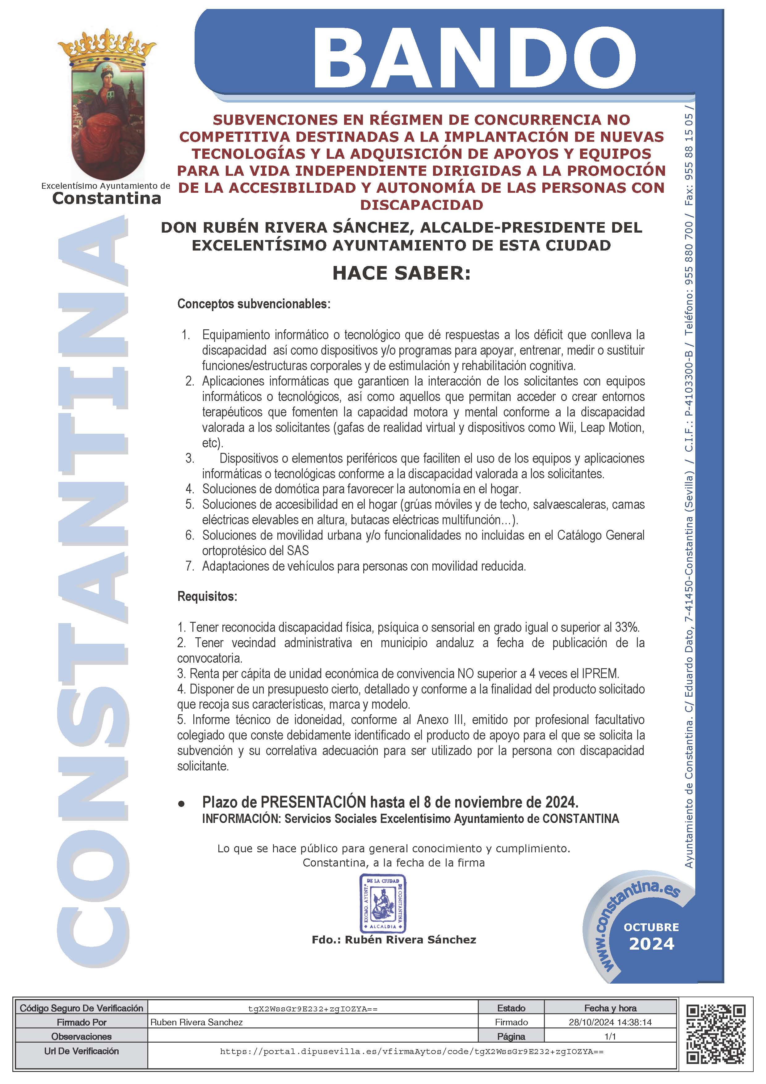 | BANDO SUBVENCIONES ACCESIBILIDAD Y AUTONOMÍA DE LAS PERSONAS CON DISCAPACIDAD | 184,13 KB |