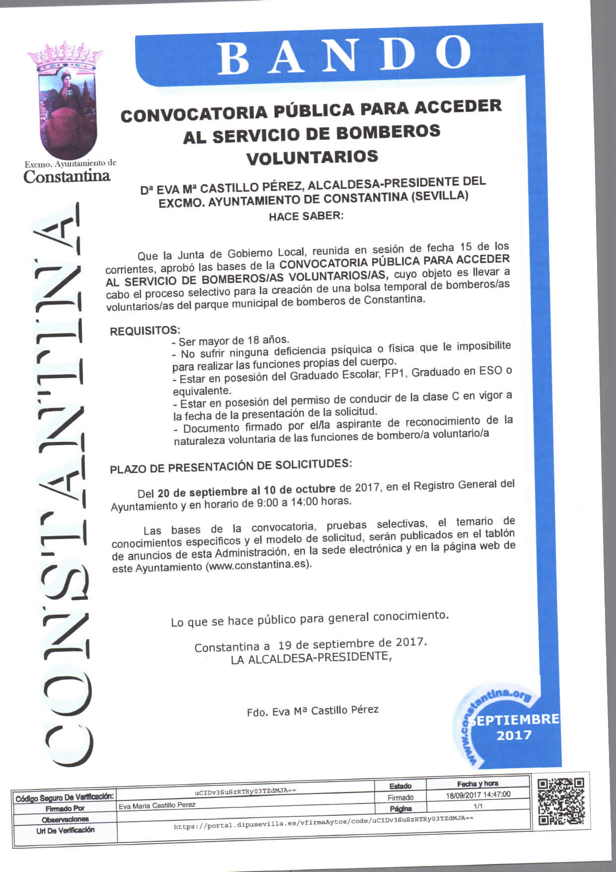 Convocatoria Servicio Bomberos Voluntarios